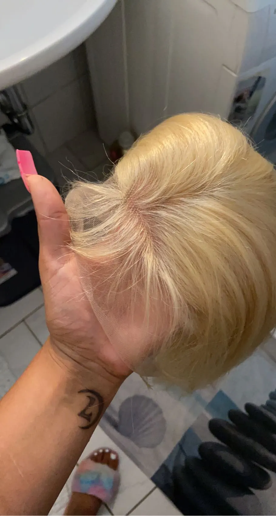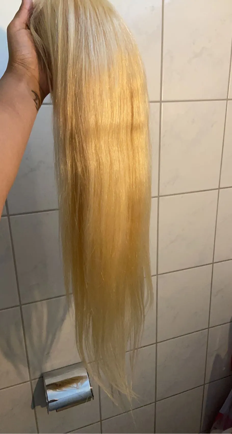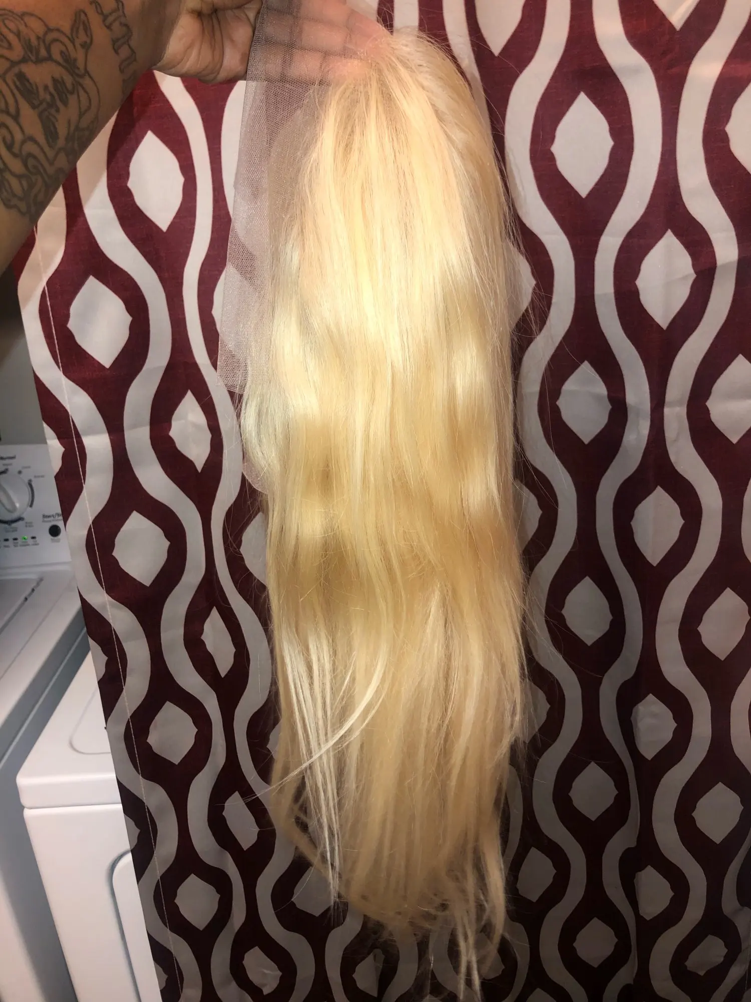 Потрясающие волосы. Кружево было таким прозрачным, а свободное пространство было глубоким. Парик был верен длине, и концы были тонкими. Я отправлю фотографии позже. Его так трудно найти хороший парик 613, и это самый близкий к доступу с лучшим качеством! Обязательно купите фиолетовый шампунь