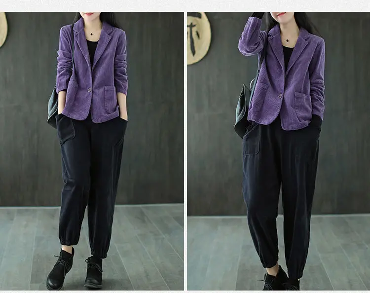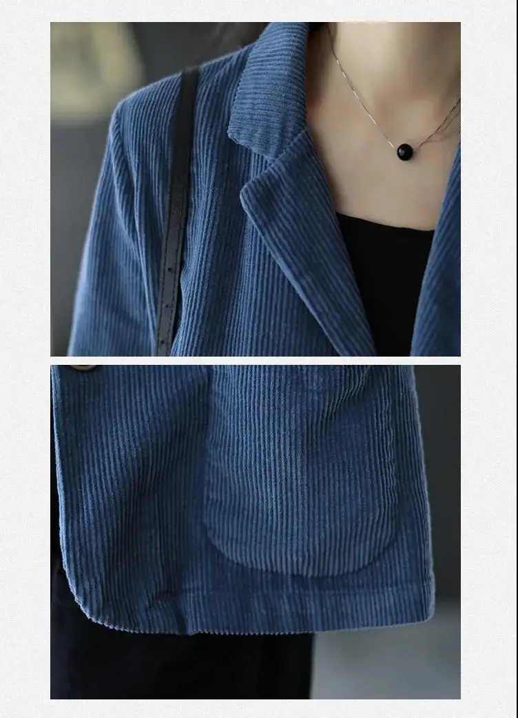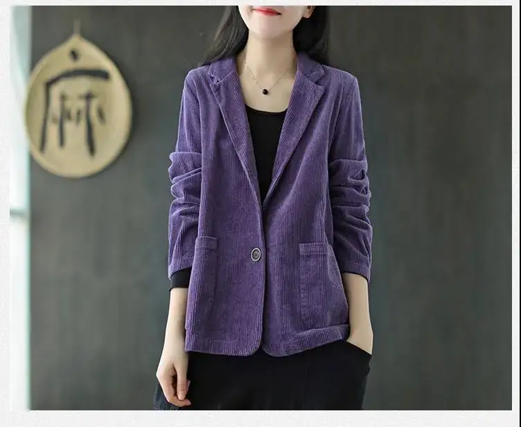 Вельветовый однобортный пиджак свободного покроя, повседневный однотонный пиджак с карманами, верхняя одежда, весна-осень 2021