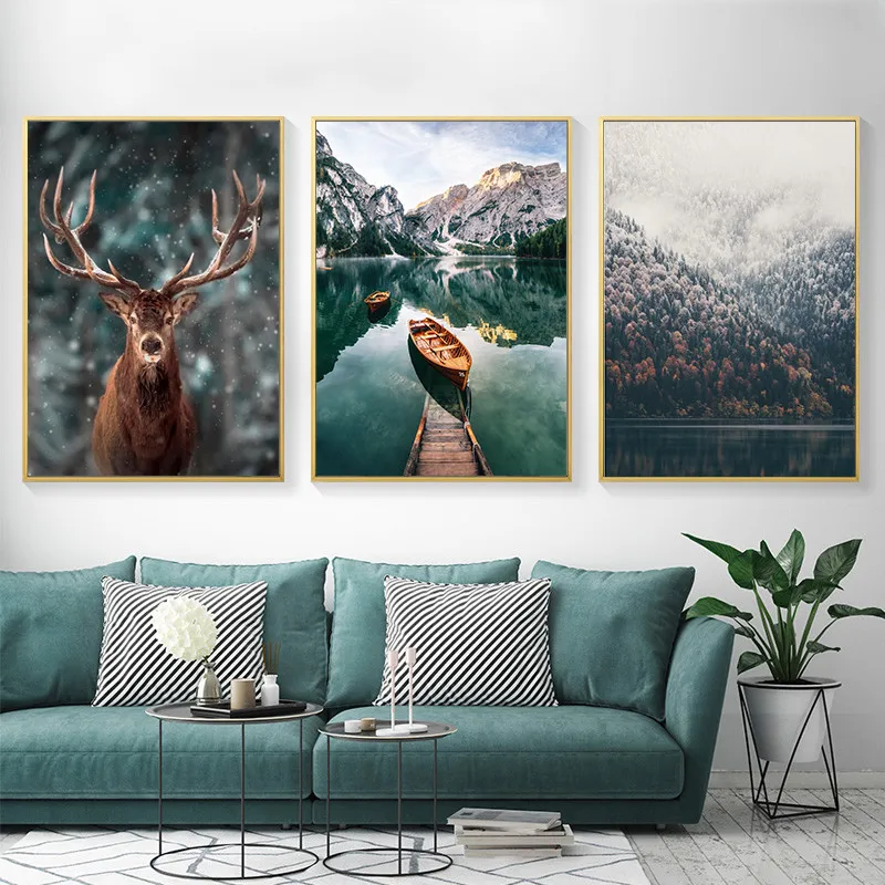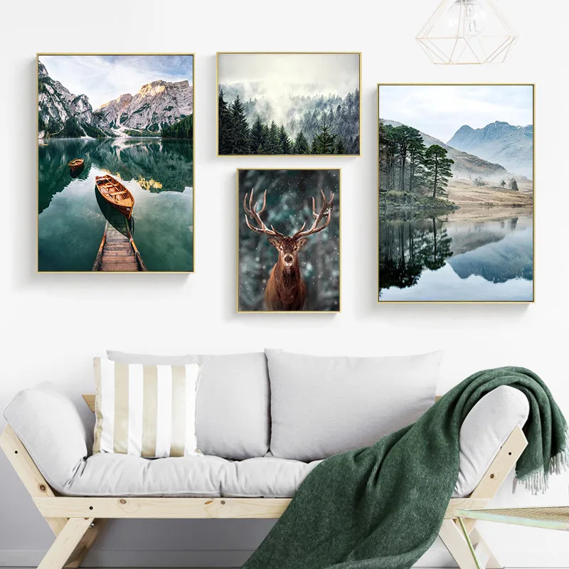 Картина с изображением лесного оленя, Настенная картина с изображением горного озера, пейзажа, природы, декоративная картина для домашнего декора TB143