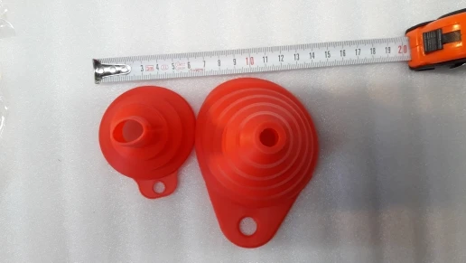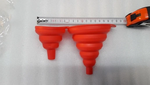 Приобретались две разные силиконовые воронки у этого продавца, но отдельными заказами, так было дешевле. Будут, как аварийные варианты для заливки тех. жидкостей в авто и в походах. Единственный нюанс, это утончение материала в местах сгибов. Как это скажется вдальнейшем при использовании ГСМ, будем наблюдать.