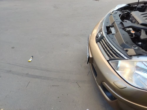 У Nissan Tiida эмблема чуть меньше диаметром, пришлось снять у пластиковой заглушки по 6-7 мм по краям и пару мм сверху. Из-за того, что морда завалена назад, угла наклона камеры вниз маловато, объекты на асфальте видны до ~ 0.6-0.7 м перед машиной, см. последние фото. Лучше, чем было, но хотелось большего - тогда надо не в эмблему, а под номером ставить, но там камни побьют и грязь. Камера рыбий глаз. Ночью без фар, только габариты, не видно толком ничего, шум. С фарами видно нормально, для того они и есть. Питание подключил на конце провода, у тюльпана, и только на время включения камеры, отдельные провода питания на конце отрезал и заизолировал. Разъём в термоусадку. Надеюсь, вода не попадёт и хватит надолго. Проводов переключения режимов - зеркалить или нет, и показывать ли линии разметки, как на фото продавца, нету. Но и не надо - изображение прямое, не отзеркалированное, линий разметки нет, всё и так хорошо.