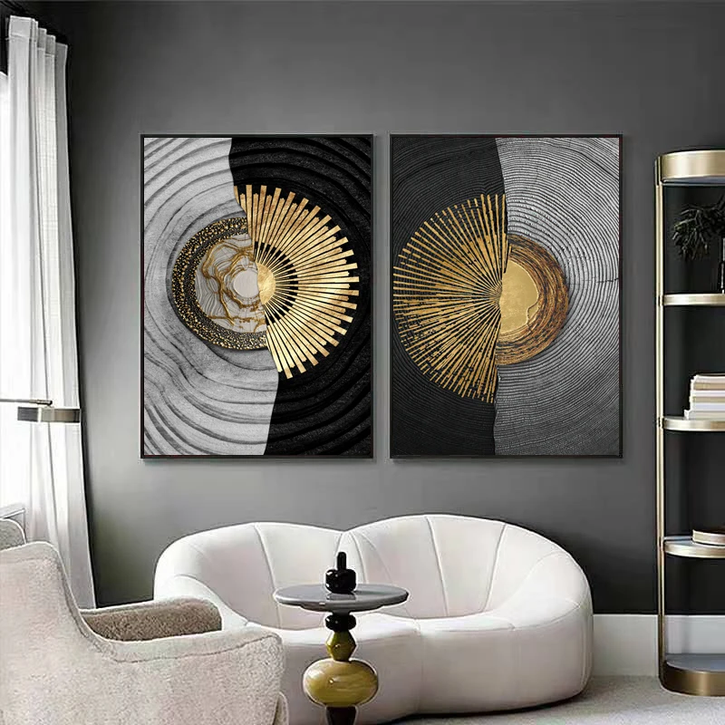 Абстрактное позолоченное домашнее украшение для стен, живопись, хол...