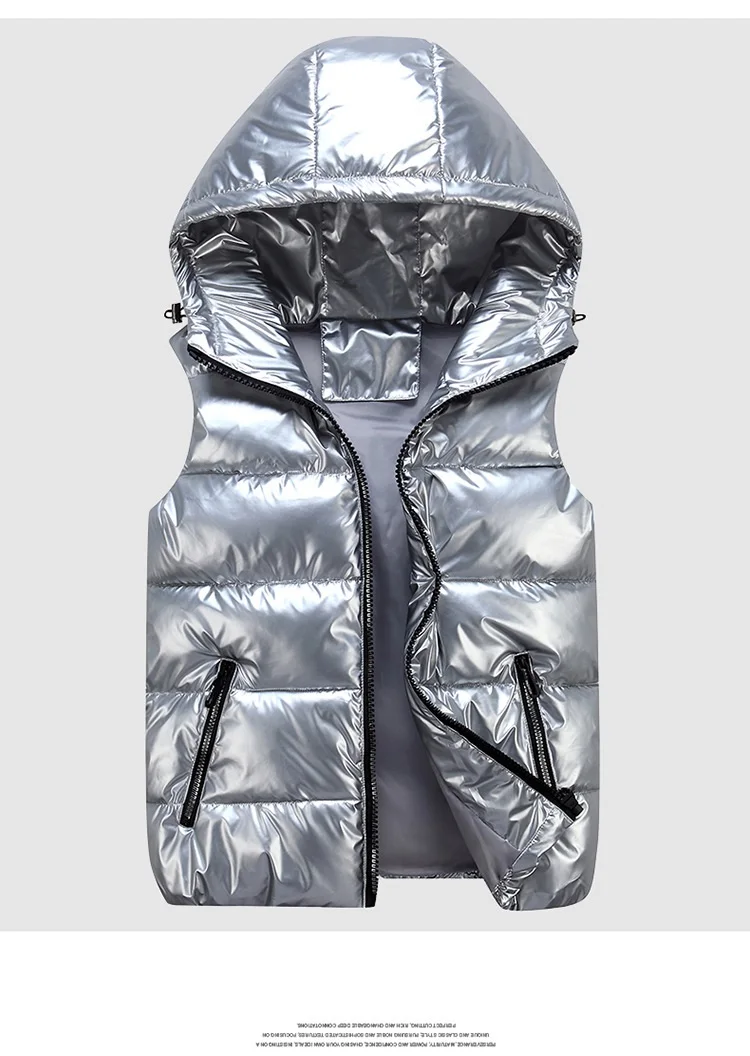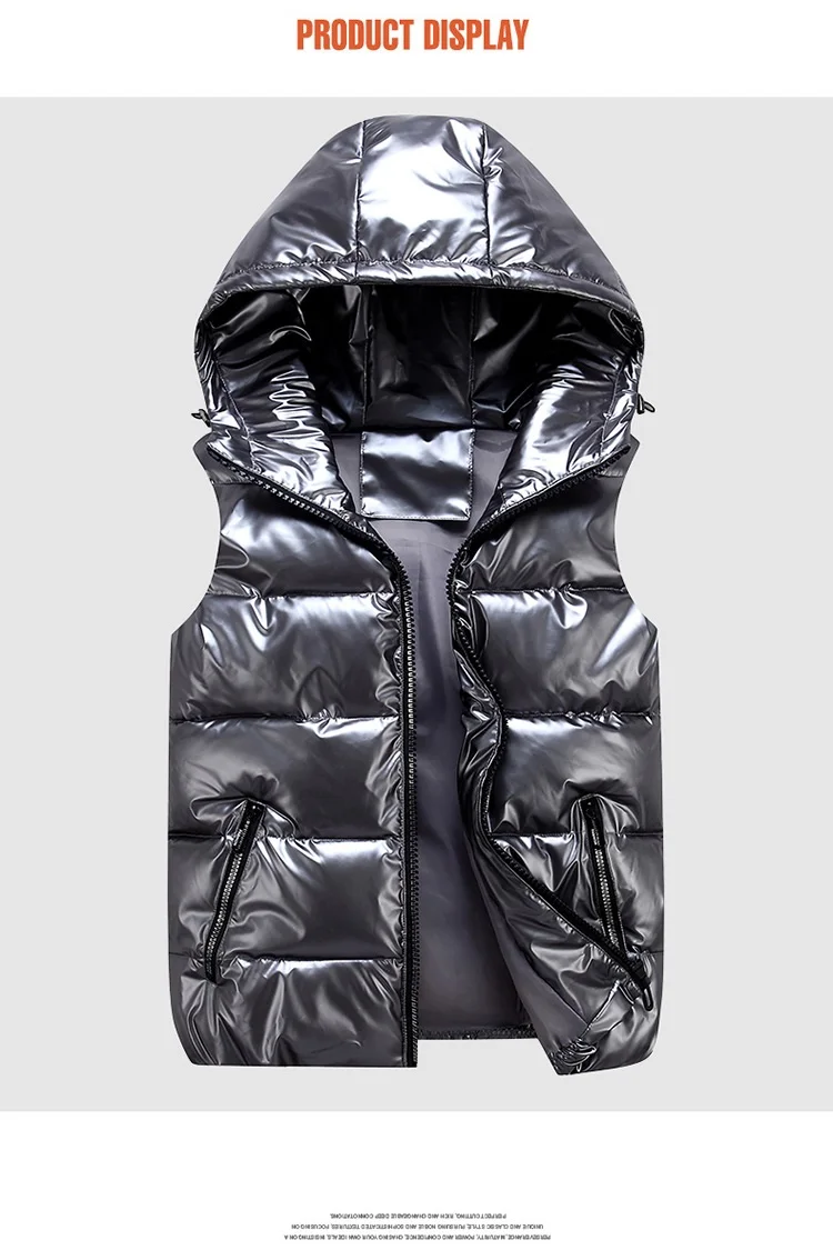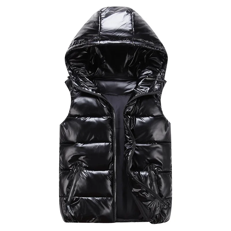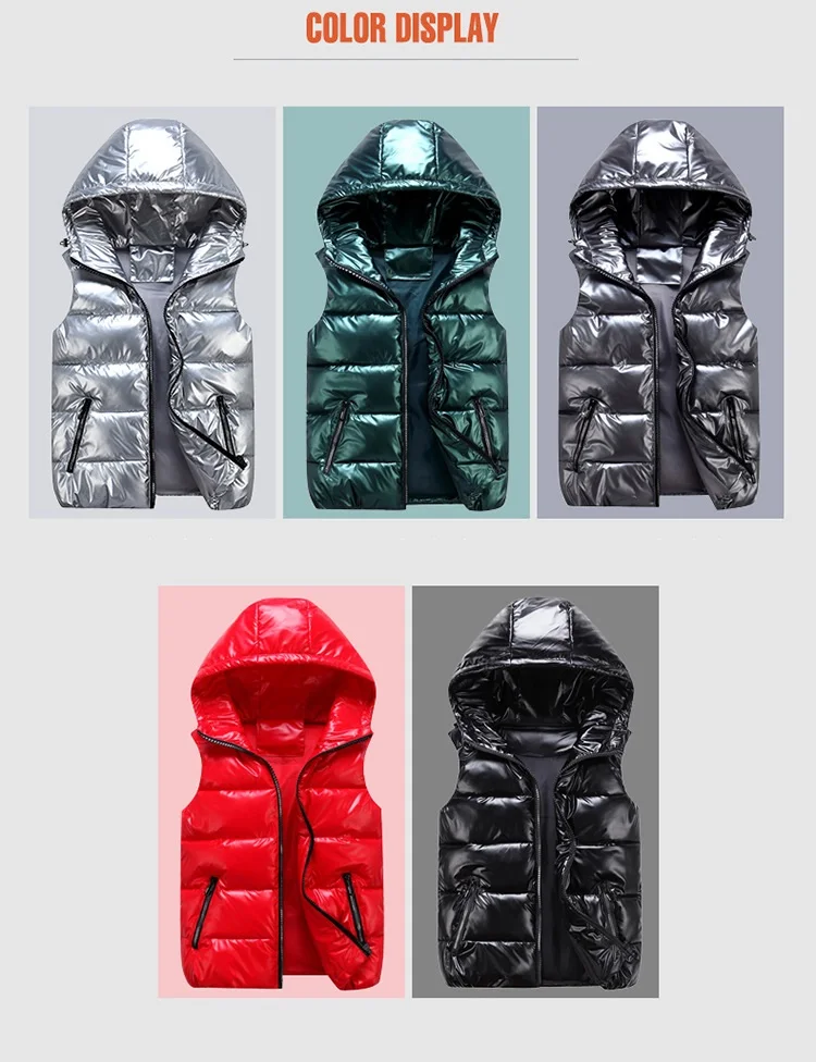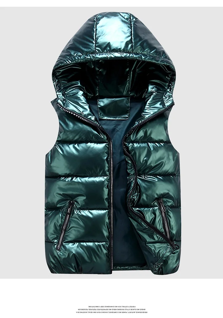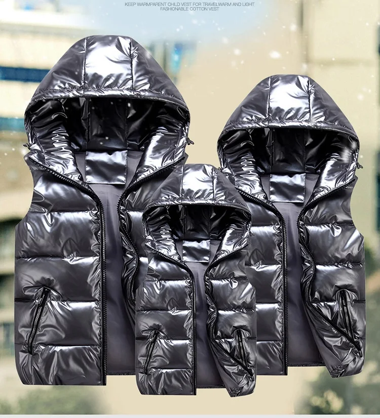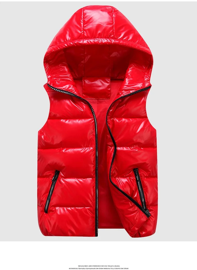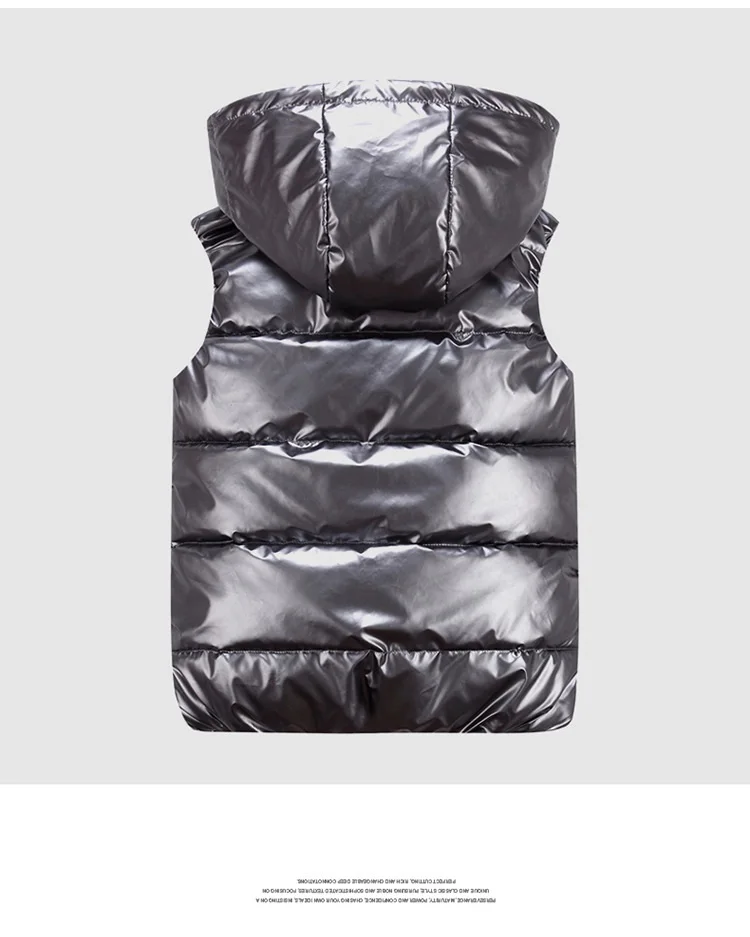 Осень-зима 2022, Блестящий жилет OLEKID для детей, водонепроницаемая куртка без рукавов с капюшоном для мальчиков, жилет для девочек-подростков