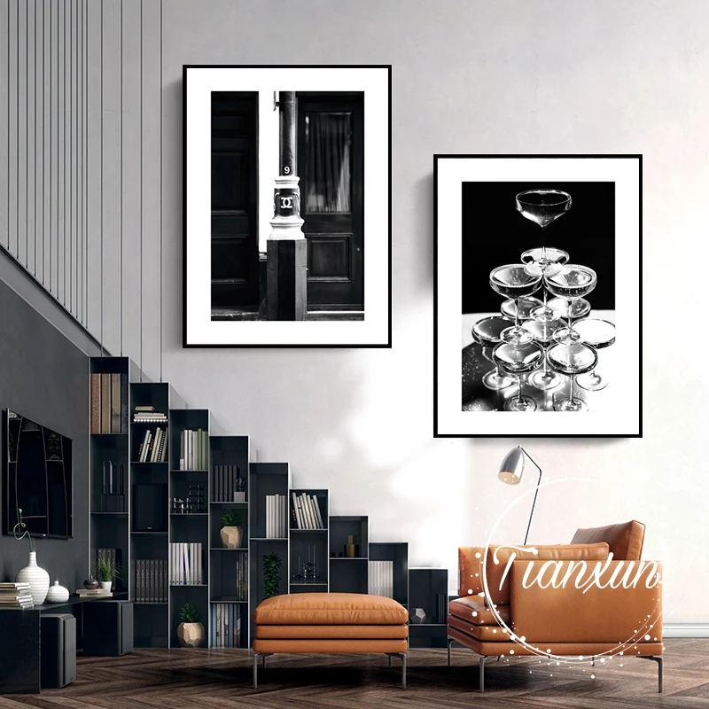 Черно-белый модный постер, уличный пейзаж, настенная живопись, абст...
