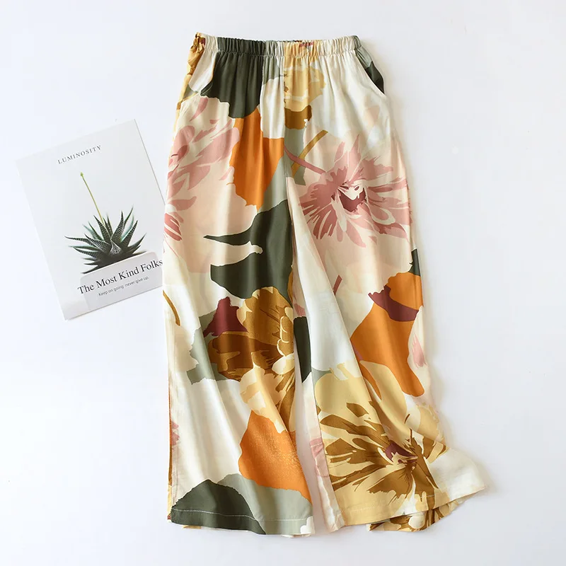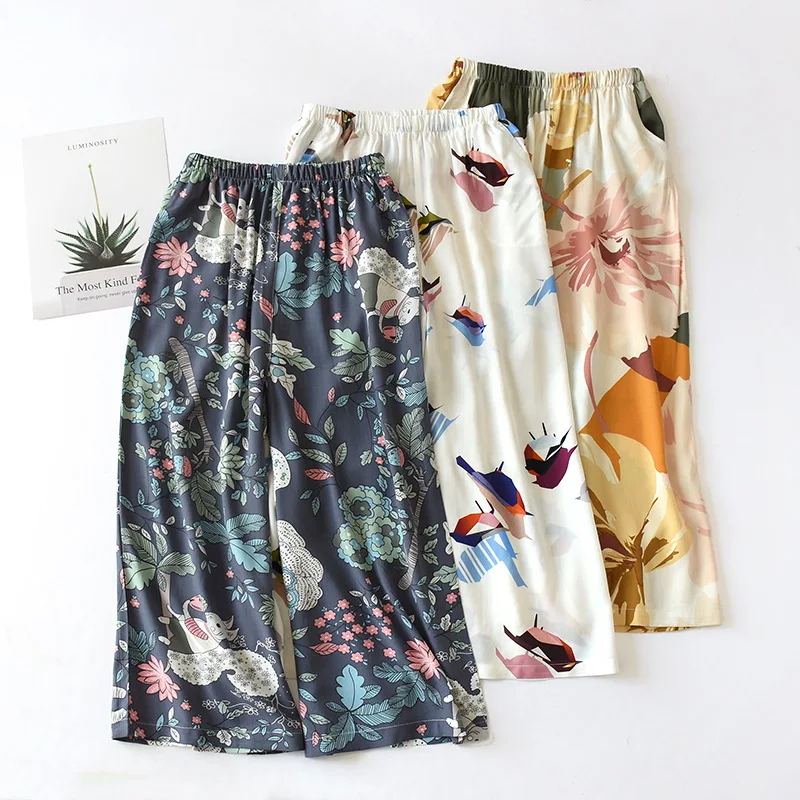 Брюки пижамные женские из вискозы, повседневные штаны до щиколотки ...