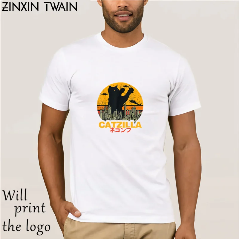 Топ, Винтажная Футболка Catzilla Sunset - Kitty Cat, для любителей Хэллоуина, модная мужская одежда 2020, модная повседневная крутая Мужская футболка