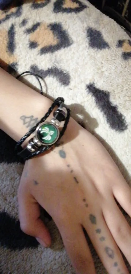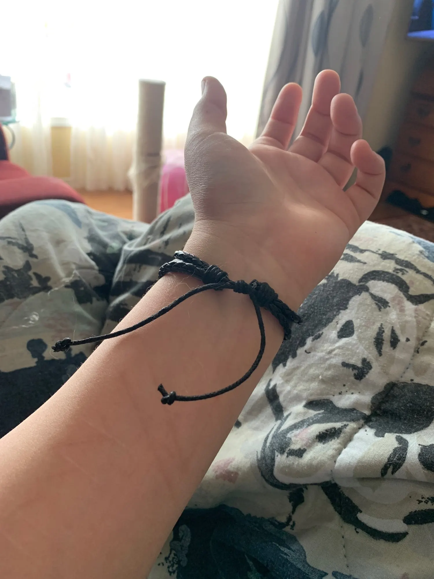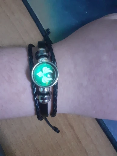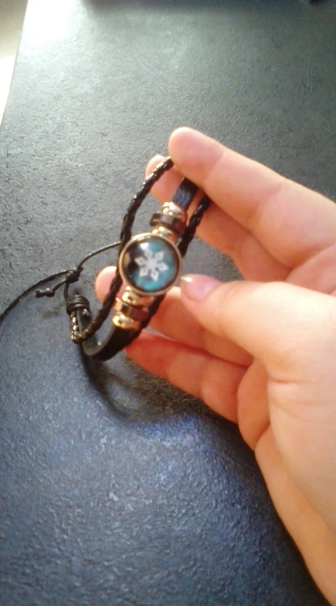 Браслет соответсвует картинке, и выглядит хорошо. Правда для моей маленькой руки он большеват, но за погрешность это считать нельзя. Так же ниточки для затяжки браслета слишком длинные, придется их отрезать. но браслет хороший, рекомендую uwu