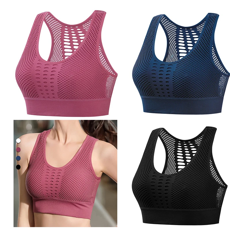 Женский спортивный бюстгальтер, сетчатый дышащий бесшовный бюстгаль...