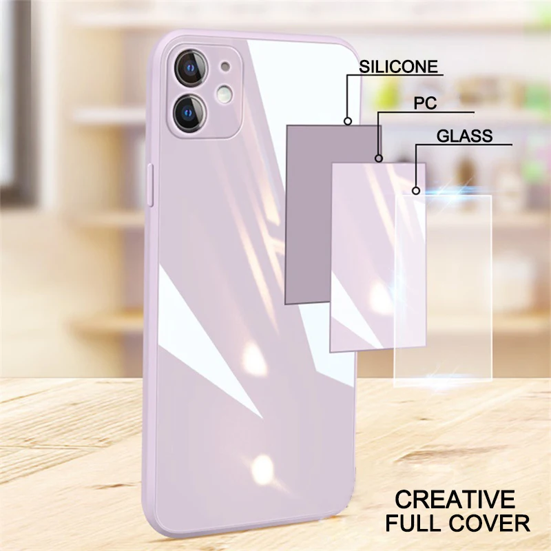 Чехол из закаленного стекла, квадратная поверхность, для телефона X Xs max XR 7 8 plus, силиконовый чехол для iPhone 11 Pro max 12 mini SE 2020, чехлы