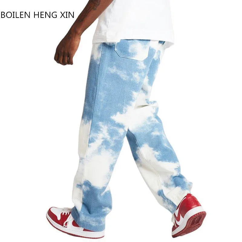 Мужские прямые джинсы с завязкой, синие брюки, комфортные эластичные брюки-стрейч, свободные прямые брюки, повседневные спортивные джинсы в стиле хип-хоп