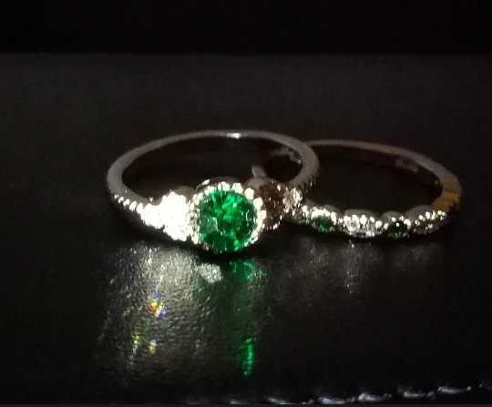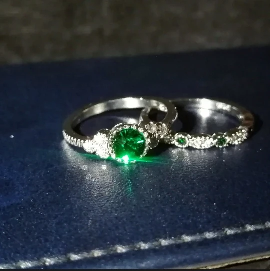 Очень красивая пара колец. Плотно прилегает, но не слишком туго. Камни в кольцах, которые я получил, зеленые, а не синие, но я не против этого.