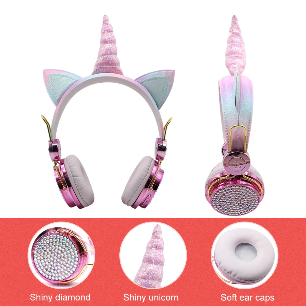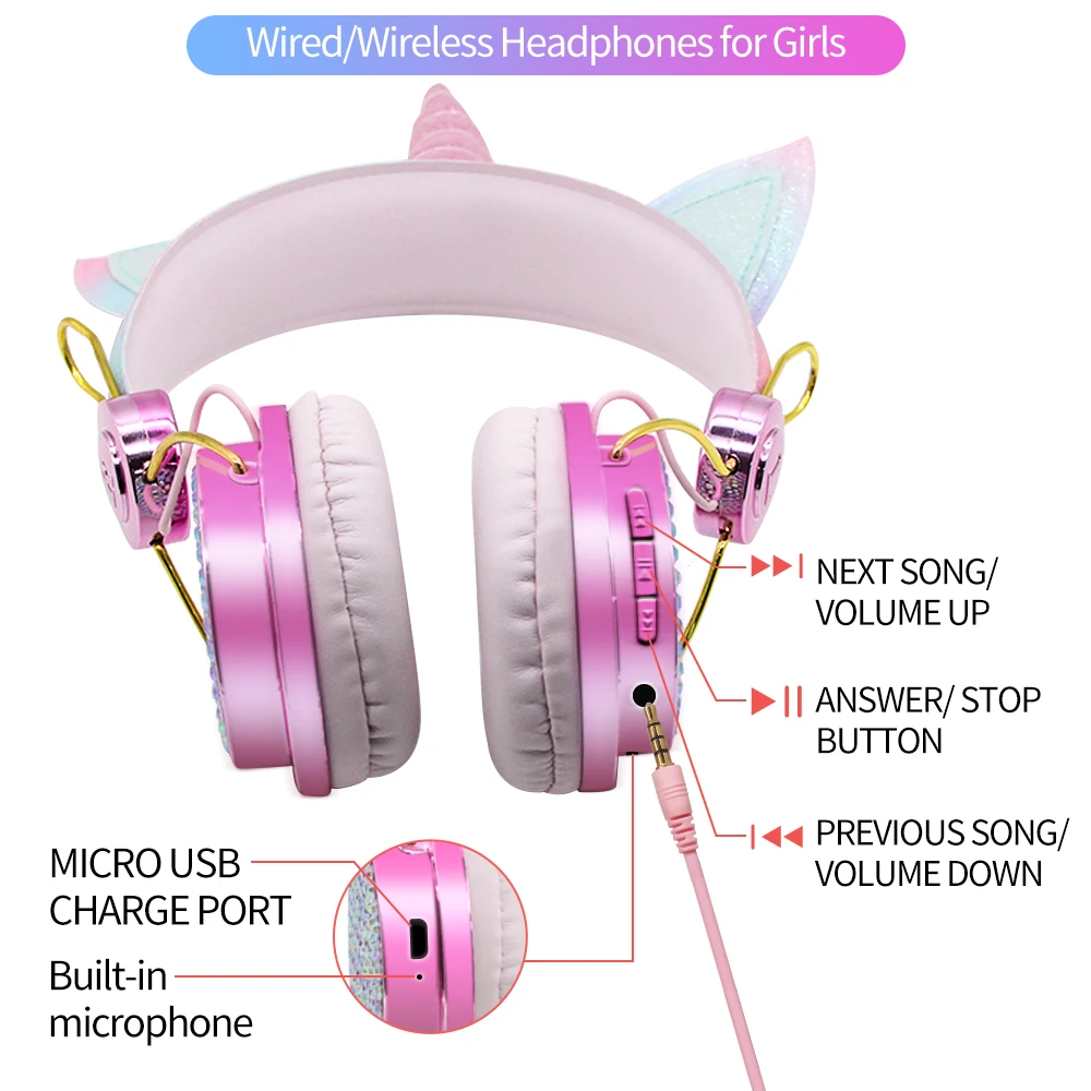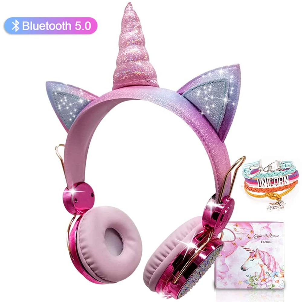 Детские наушники Bluetooth беспроводная Милая гарнитура с единорогом с микрофоном Накладные наушники для школыKindleпланшетаПК онлайн-обучения