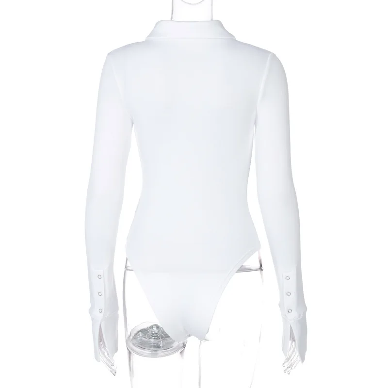 Ромпер женский с длинным рукавом, модный пикантный Повседневный облегающий боди на пуговицах, водолазка, рубашка-поло, весна 2021