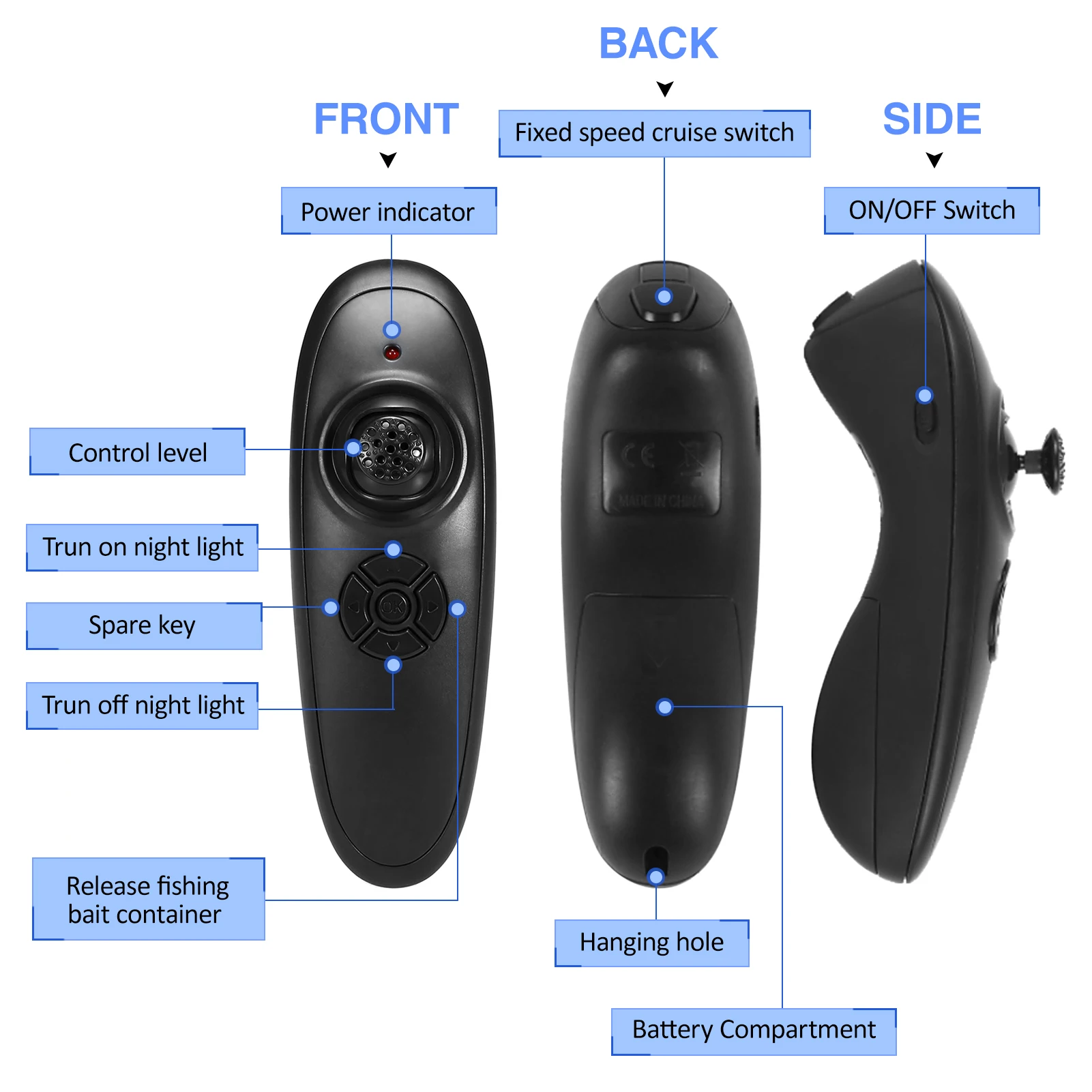 Беспроводное управление позволяет выпустить приманку далеко в озере, реке и водохранилище. 3 контейнеры для наживки могут вмещать около 4,4 фунта приманки для всех игровых рыб. Простота в эксплуатации для любителей рыбалки или начинающих, а также для детей.Особенности:3 контейнера для наживки с несущей способностью около 4 фунтов для большего количества наживок. (Примечание: контейнер для наживки без функции самостоятельного возврата, вы должны вытянуть его назад руками после освобождения.)Беспроводное управление и Круизный переключатель с фиксированной скоростью позволяют выпустить приманку далеко. (Дистанционный диапазон: 500 м/540 ярдов)Двойные двигатели и двойные пропеллеры делают лодку легкой в спорте и кролировании.1 передние белые огни и 2 задние синие ночные огни для ночной рыбалки и кормления.Обтекаемый корпус уменьшает Водонепроницаемость и устойчивость к волнам 5 уровней.Лодка приманки питается от buit-in 7,4 v/5200mAh аккумуляторная батарея (входит в комплект).Пульт дистанционного управления питается от двух батарей AAA (в комплекте).V-образная конструкция крючка, более эффективно носить крючки и приманки одновременно.Спецификация:Материал: АБС + металлБатарея лодки-приманки: 1*7,4 v 5200 mAh 18650 аккумуляторная батарея (входит в комплект)Удаленная Батарея: 2 * AAA батареи (в комплекте)Время зарядки: около 10 часовПриманка подшипник Ёмкость: кг/2 кг/4,4 фунтов лёгкий нейлоновый тросДистанционный диапазон: 500 м/540 ярдовРазмер приманки: 500*270*230 мм/19,7*10,6*9,1 дюймовВес лодки-приманки: прибл. 1,9 кг/4,2 фунтов лёгкий нейлоновый тросВес посылка: прибл. 2,65 кг/5,8 фунтов лёгкий нейлоновый тросПосылка:1 * Лодка-Приманка (перезаряжаемая батарея)1 * пульт дистанционного управления (с 2 батареями AAA)1 * антенна1 * Руководство пользователя1 * зарядное устройство2 * Запасные пропеллеры