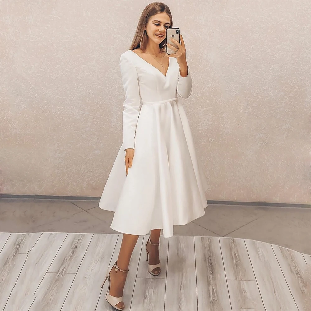 LUXIYIAO LO85 Короткое свадебное платье 2022 A-силуэт с длинным рукавом V-образным вырезом простой стиль бохо винтажное для женщин халат свадебные платья