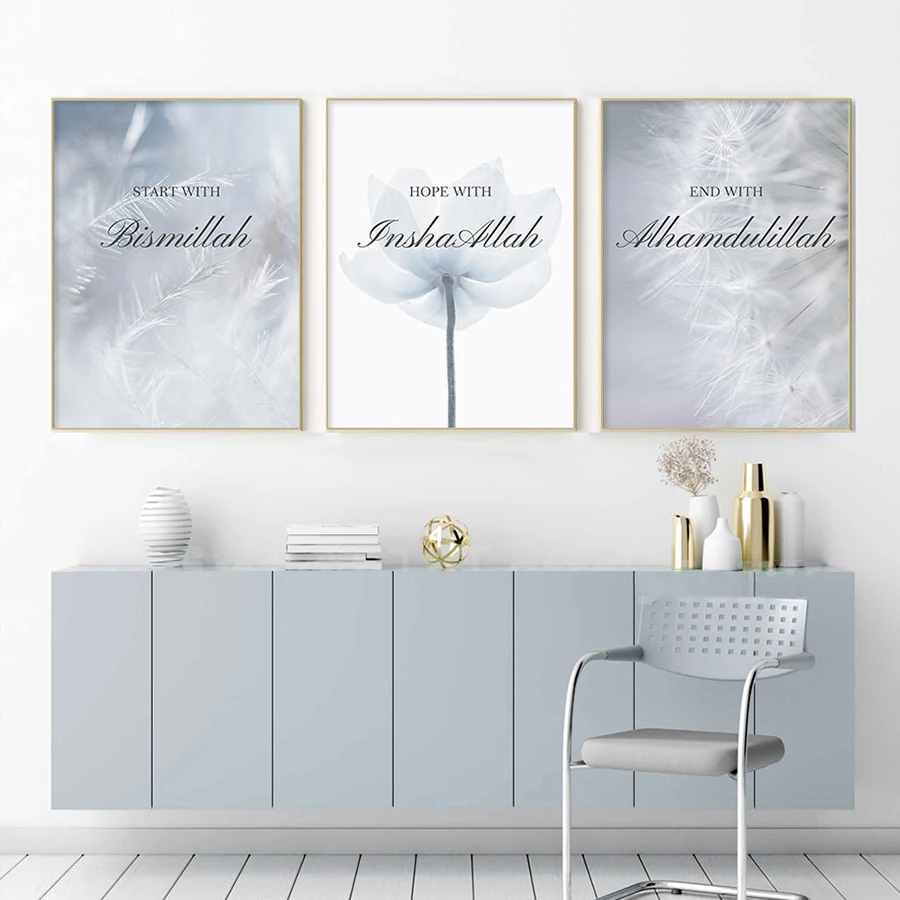 Мусульманский иниша Аллах Цветущий Цветочный Одуванчик синий плакат...