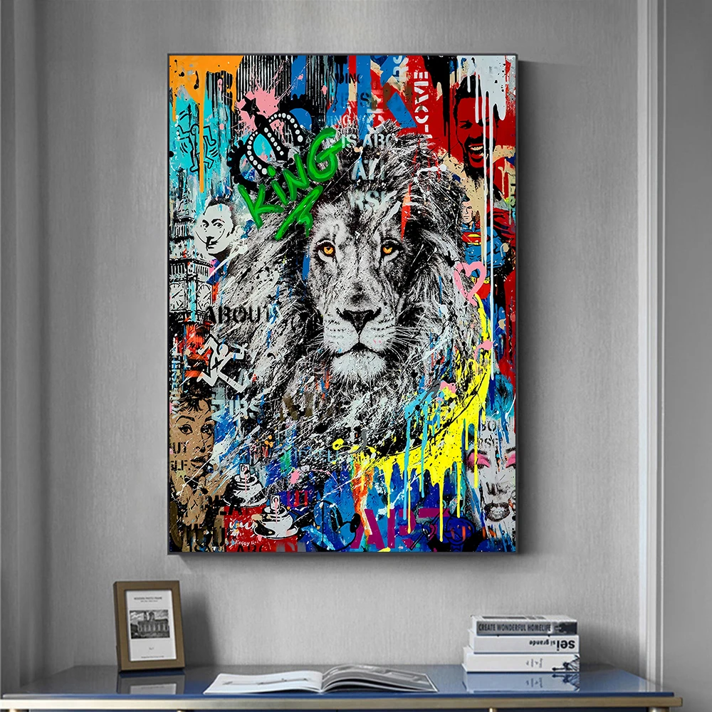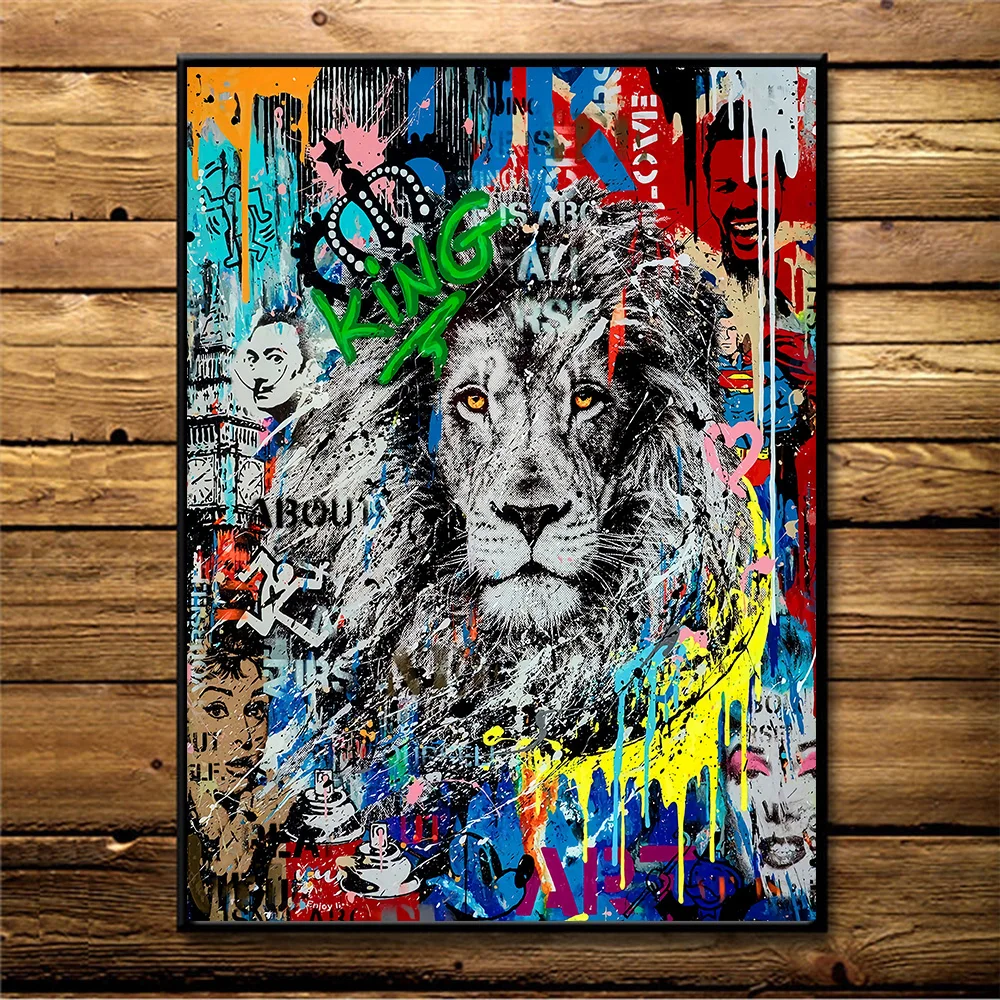 Художественные постеры с изображением Льва, картины на холсте, настенные принты, уличный художественный постер, картины с изображениями животных для современной домашней стены