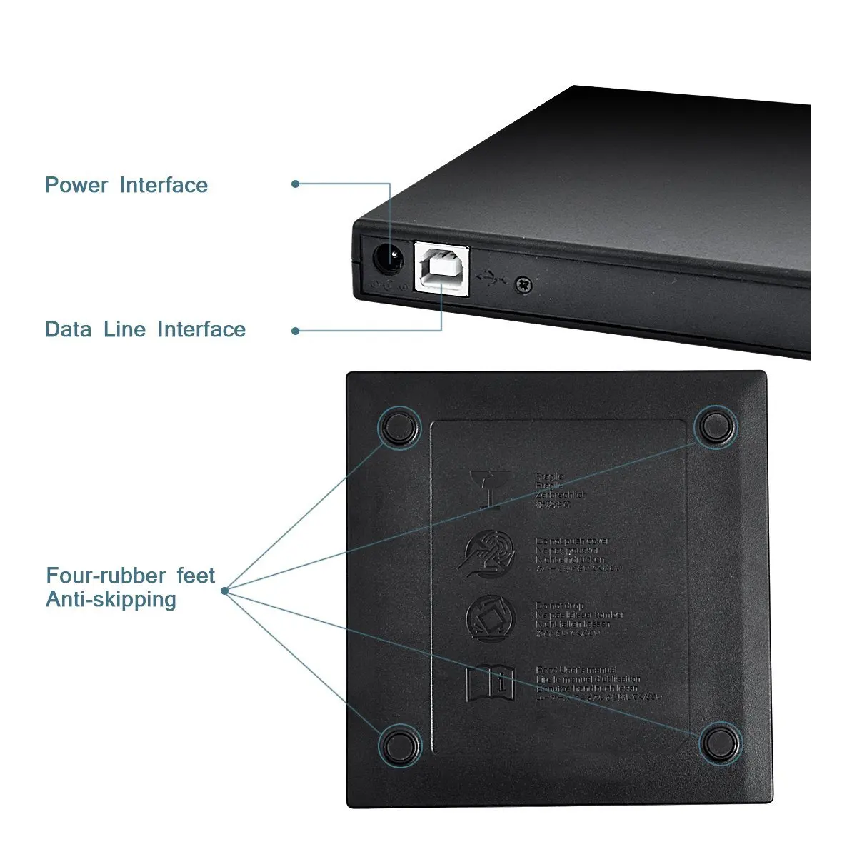 Внешний DVD-оптический привод, USB 2,0, DVD-ROM, видеорегистратор, портативный, для Macbook, ноутбуков, ПК, Windows CD-ROM