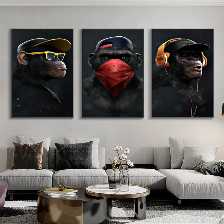 Черно-белая креативная В индустриальном стиле головной убор с наушниками Gorilla надпись настенное искусство холст картина плакат для спальни Кабинета домашний декор