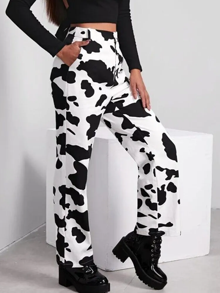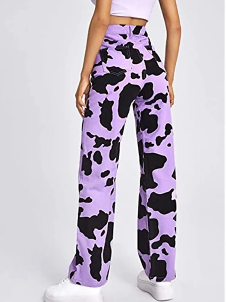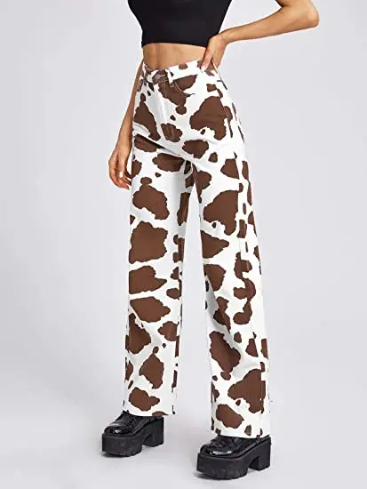 Винтажные прямые мешковатые джинсы с принтом, женские повседневные брюки с завышенной талией, свободные длинные брюки в стиле индийского народного Харадзюку, женские уличные