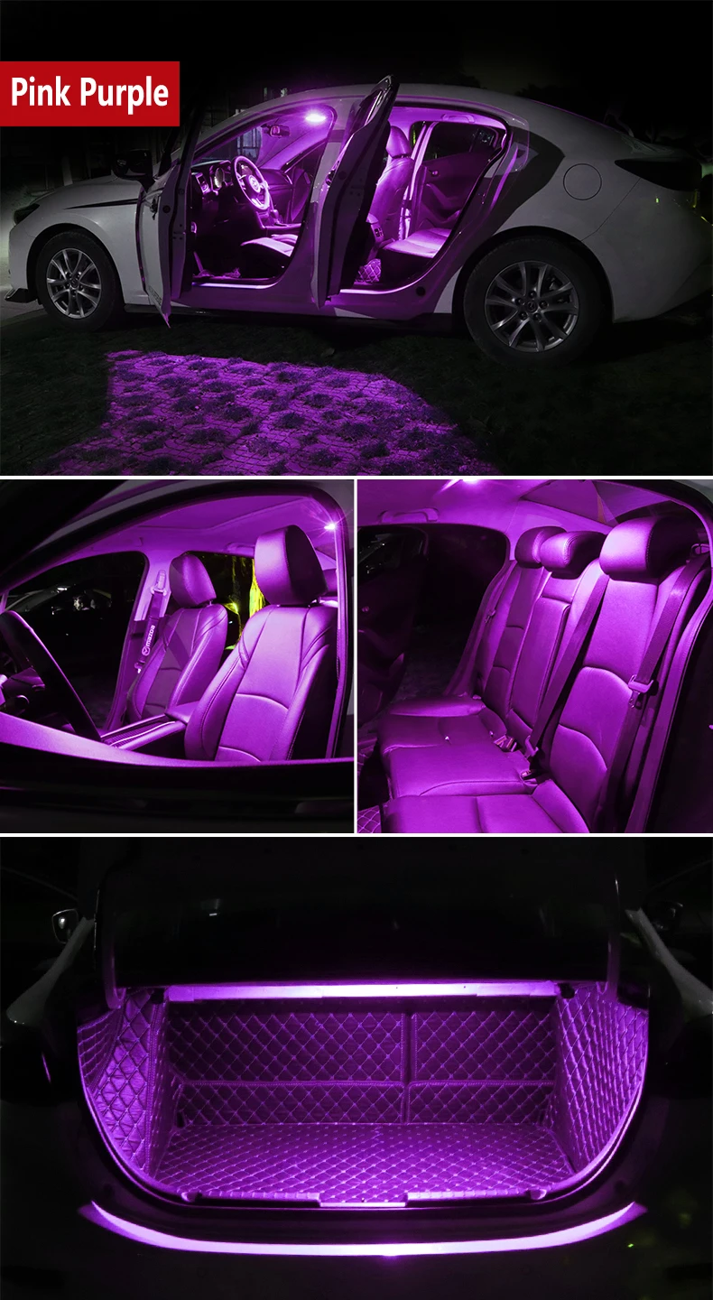 Посылка включает:4 x светодиодный купол и Карта4 x светодиодный задний купол и Карта4 x светодиодный косметическое зеркалоСветодиодный светильник для багажника-2 шт.1 х светодиодный футляр для перчаток2 x светодиодный фонарь4 x светодиодный фонарь для двери2 x светодиодный дополнительный запасной