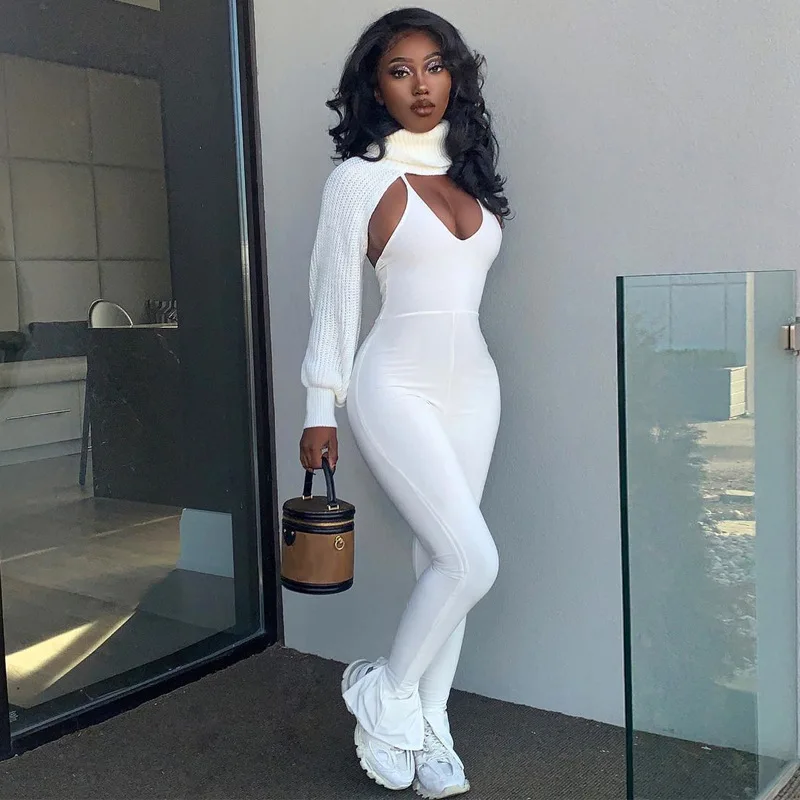 Комбинезон BOOFEENAA Женский, белый, с открытой спиной, с лямкой че...