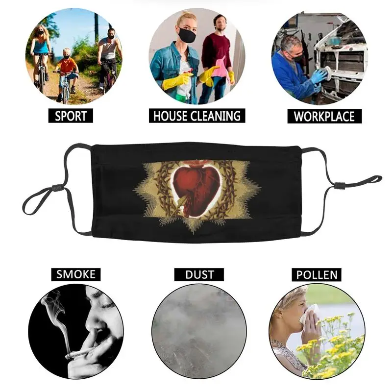 Священное Сердце из Иисус католический рот маска для лица многоразовая христианской вере маска унисекс Анти-пыль Защитная крышка респиратор муфельная печь