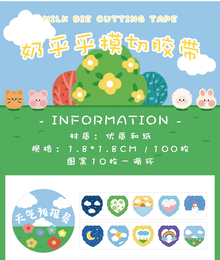 Размер: 18*18 ммКоличество: 1 лента васи (включая 100 наклеек)