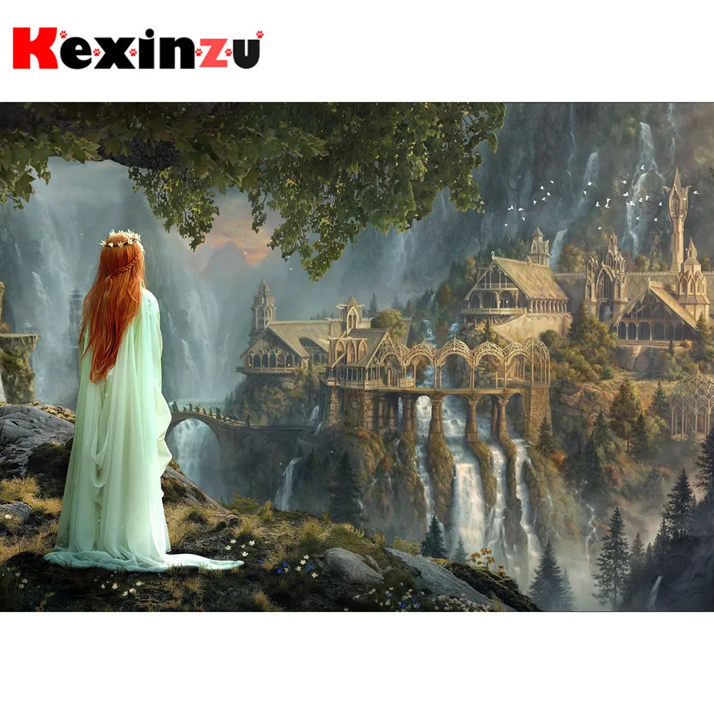Набор для алмазной 5D вышивки kexinzu, картина из квадратныхкруглых страз Горный дворец, 3d-вышивка крестиком, мозаика, Подарочная картина