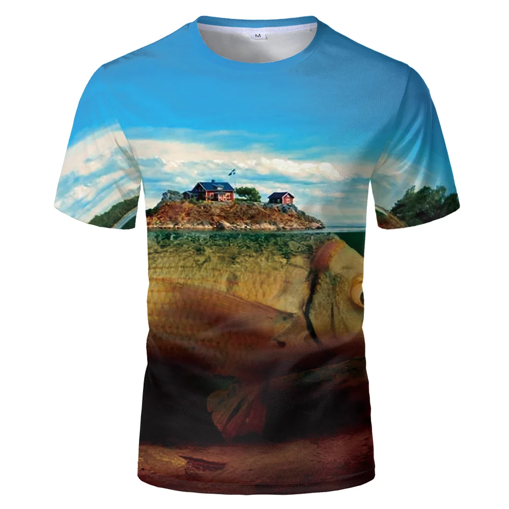 Мужская Уличная футболка с 3D-принтом рыбалка, повседневные короткие топы, Мужская одежда для рыбалки, Новинка лета 2021