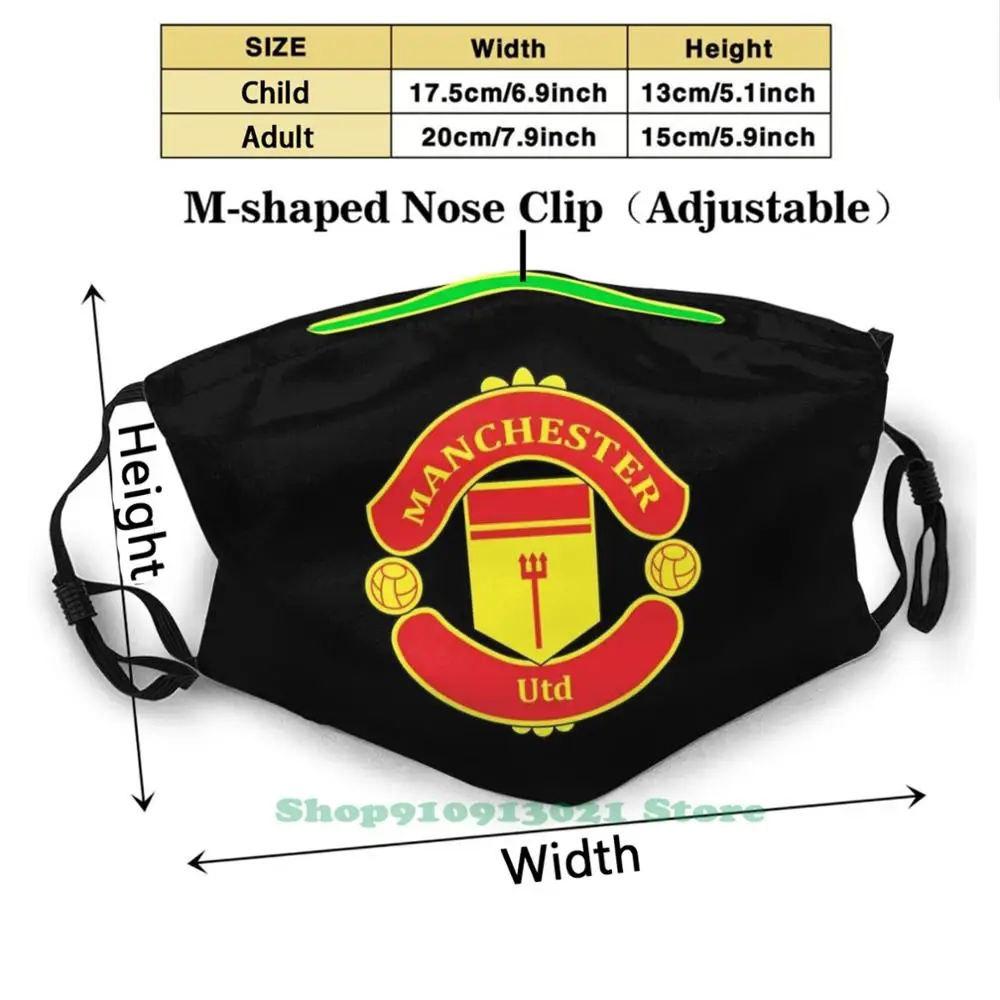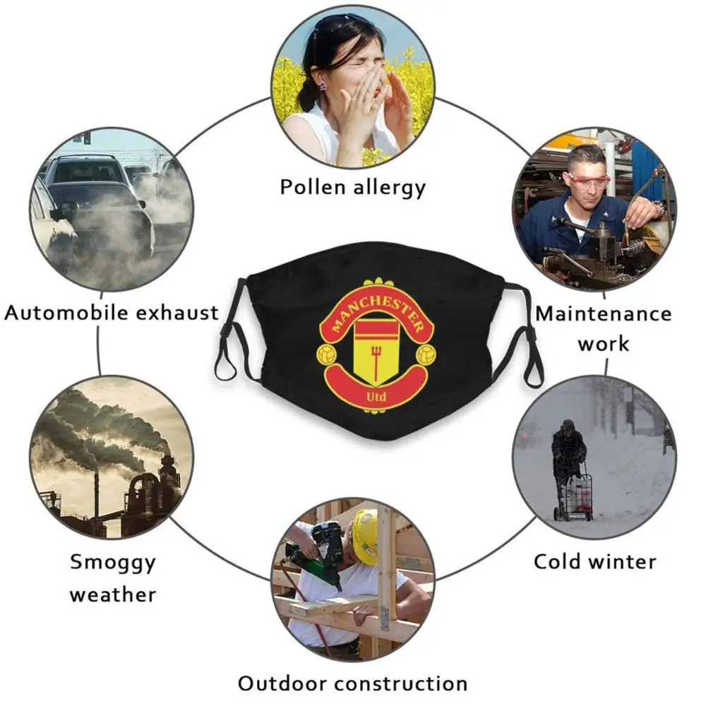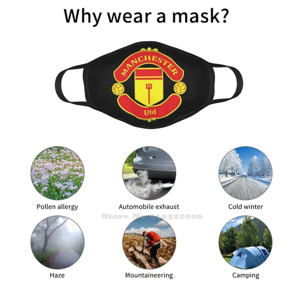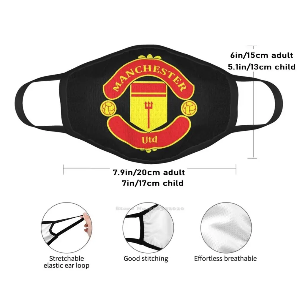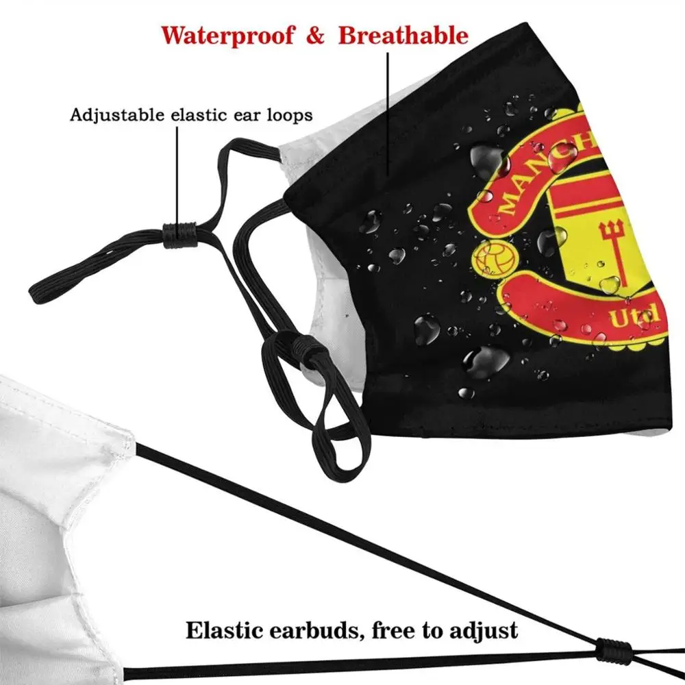 Черные противопылевые маски Utd с фильтром для мужчин женщин мужчин моющиеся черные маски Mu M Old Traf Premier League логотип Красный Дьявол