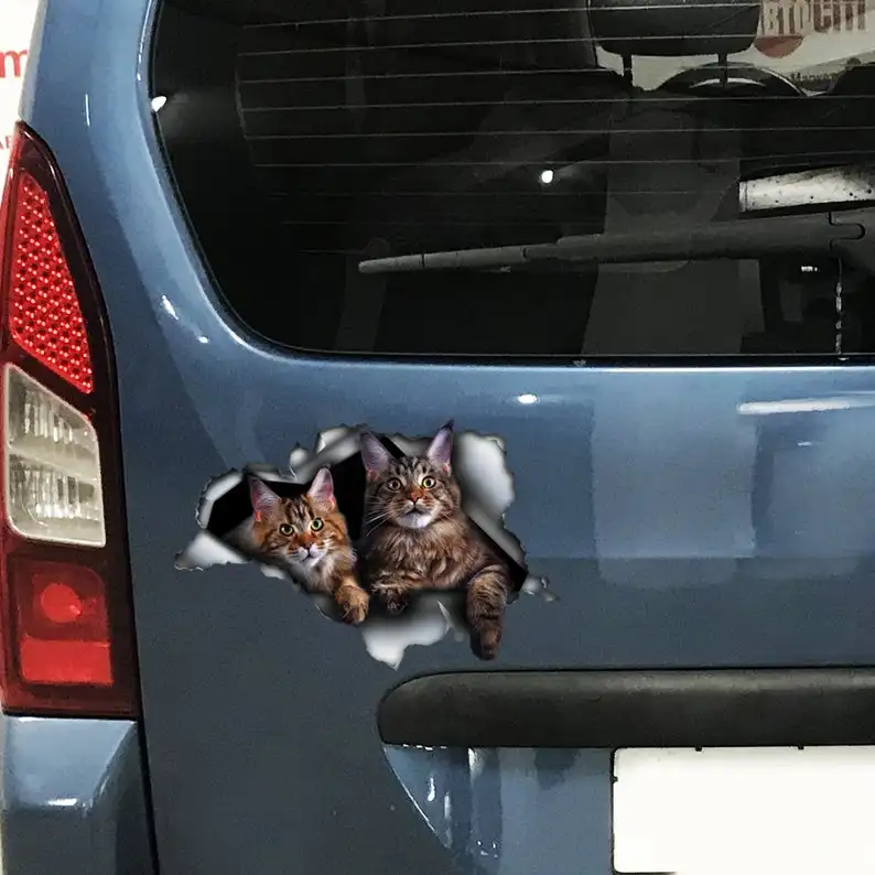 2021, наклейка на автомобиль с изображением кошек, наклейка с изображением Мейн-енота, наклейка на телефон