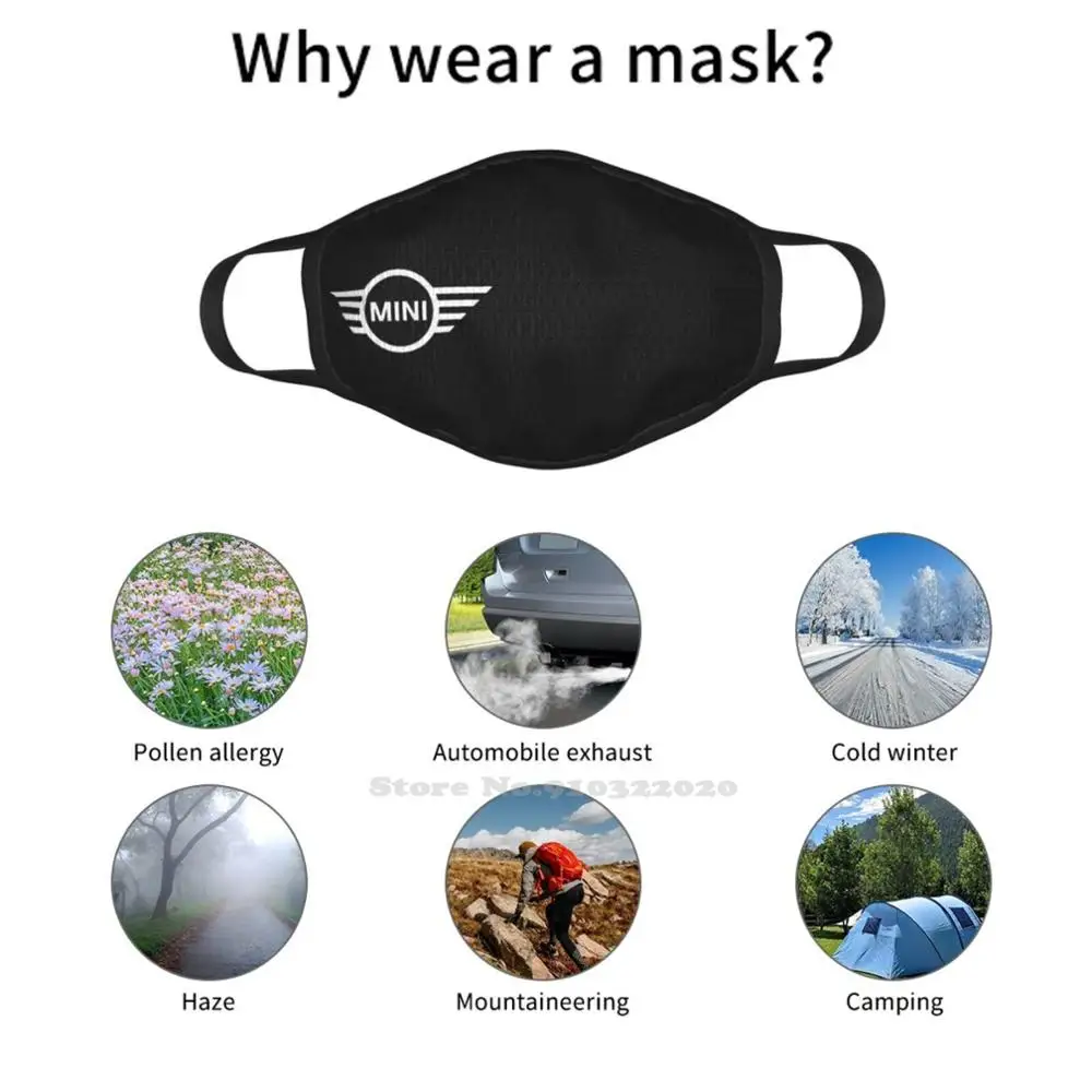 Маска для лица с фильтром Pm2.5, черная, с забавным принтом