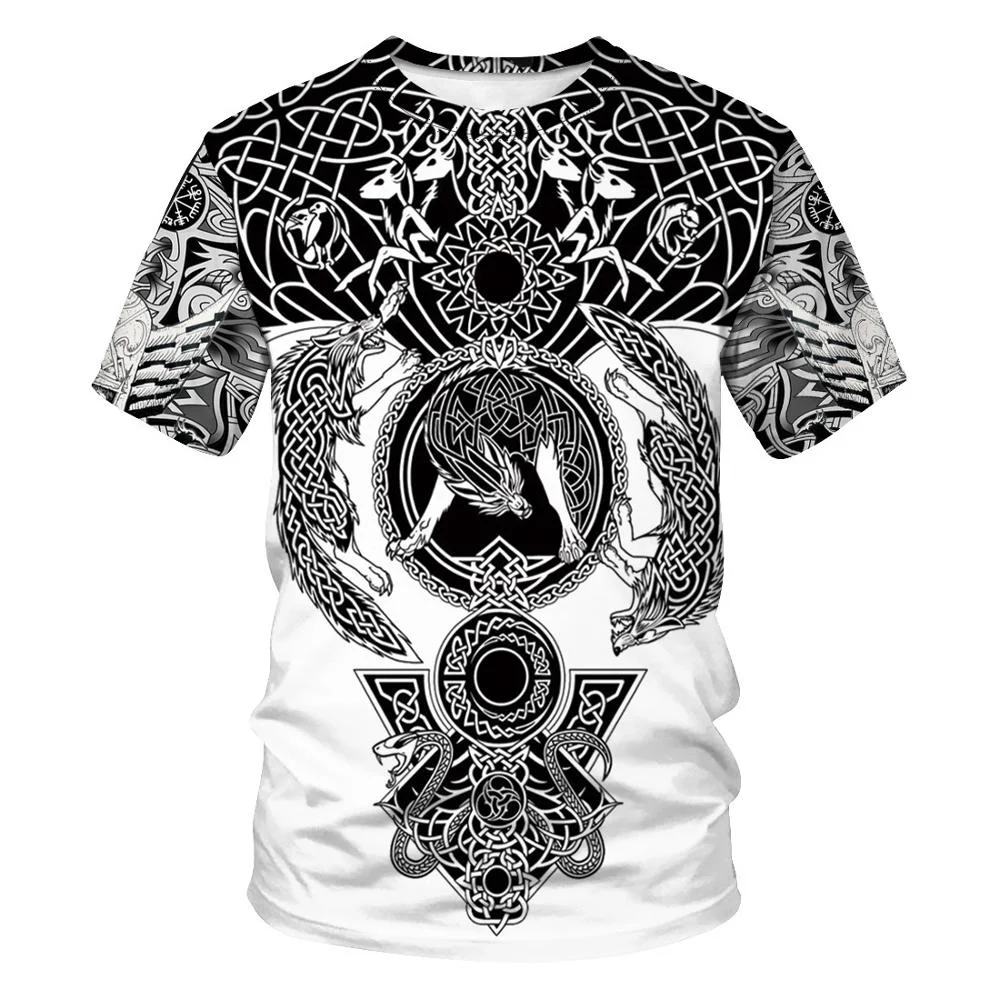 Новинка 2021, брендовая одежда, футболка с 3D-принтом татуировок викингов, летняя забавная футболка, Повседневная футболка в стиле Харадзюку, уличная одежда