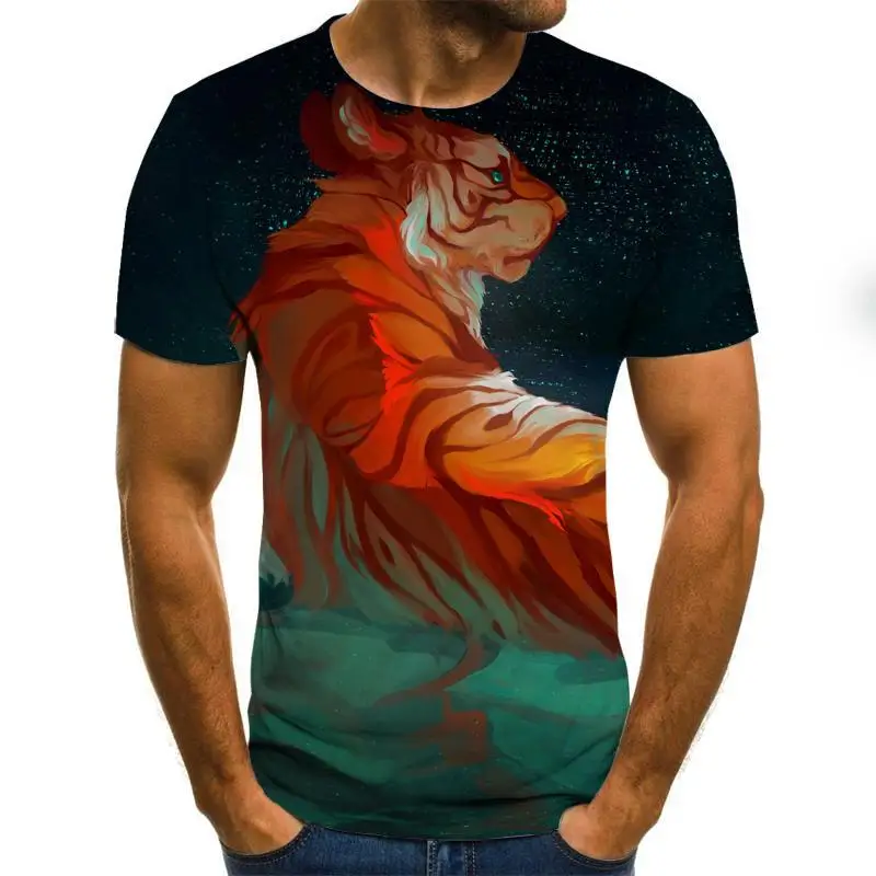 Футболка мужская объемная с принтом животного, тигра, Льва, лица, н...