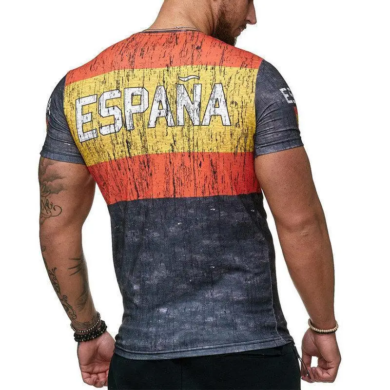 Мужская футболка с принтом флага Испании, Повседневная легкая облег...