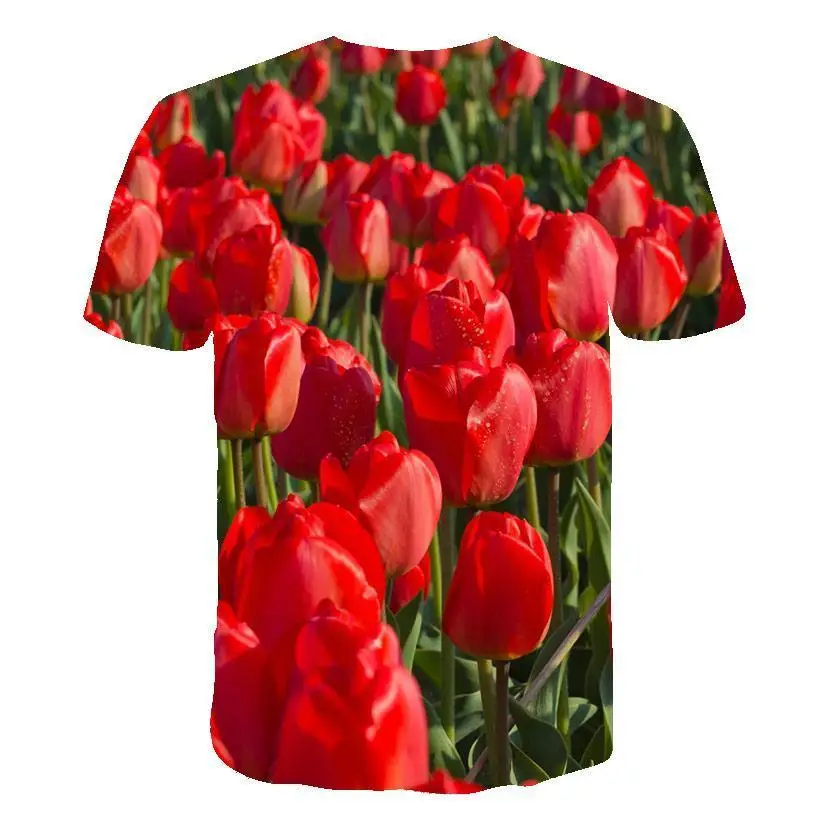 Футболка мужская с 3D-принтом, уличная одежда, повседневная рубашка с розовым тюльпаном, цветочным 3d принтом, размеры S-6XL, лето