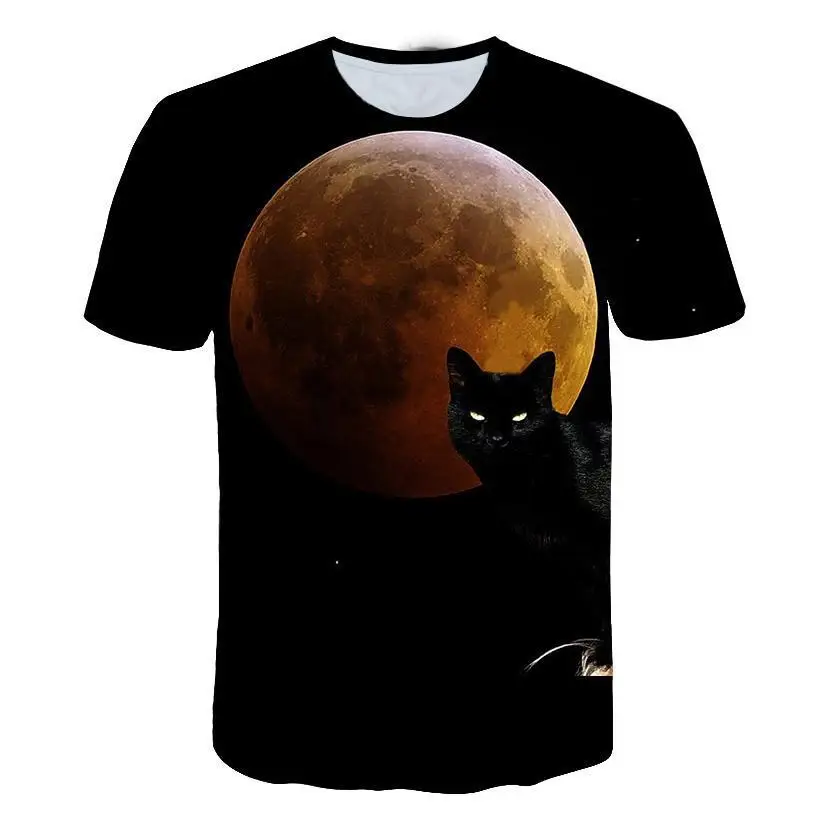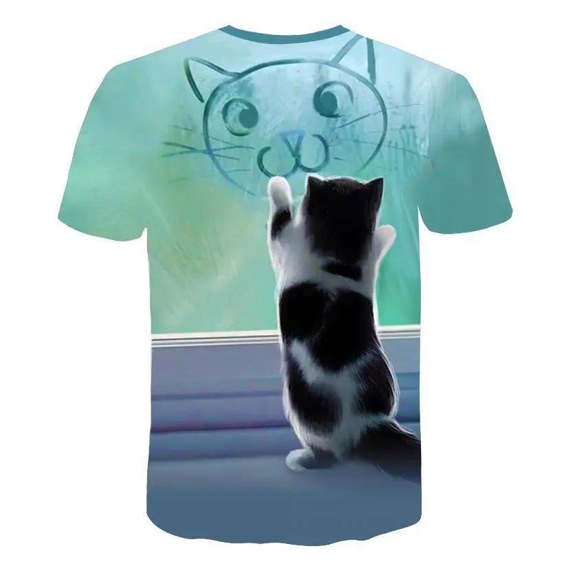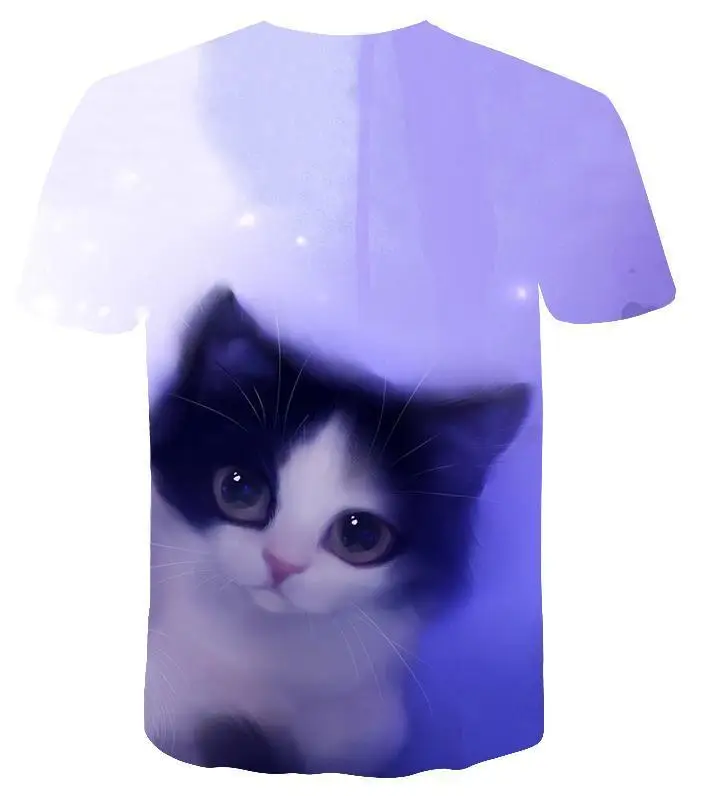 Футболка с 3D-принтом кошки для мужчин и женщин, модная рубашка с к...