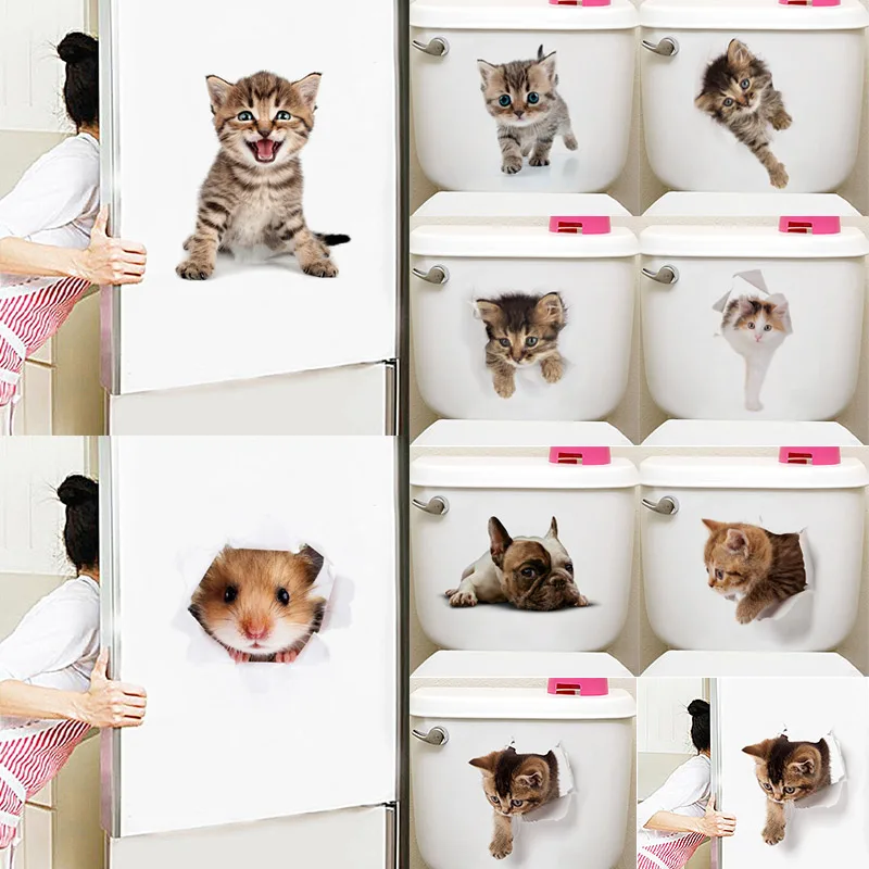 3D настенные наклейки для кошек и собак, наклейки для ванной, спальни, животных, наклейки для туалета, украшение для дома, художественный постер SCVD889
