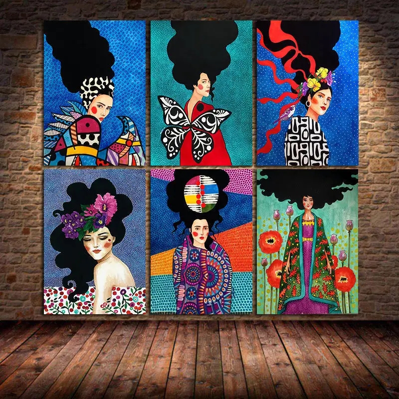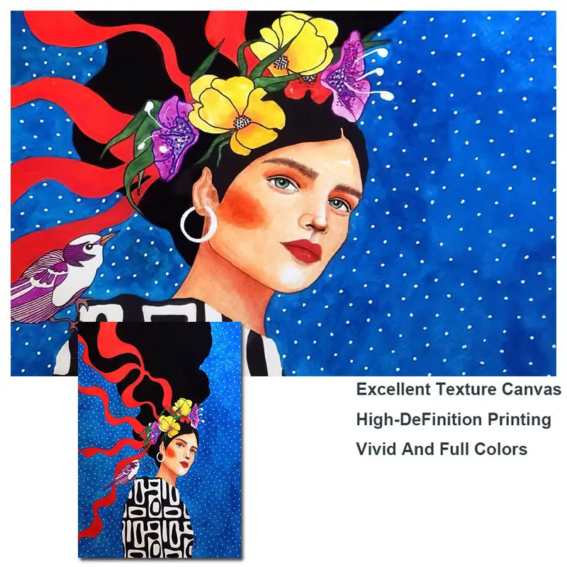 Скандинавская абстрактная девушка цветок птица настенная Картина на холсте постер принты винтажная Настенная картина для гостиной домашний Декор без рамки