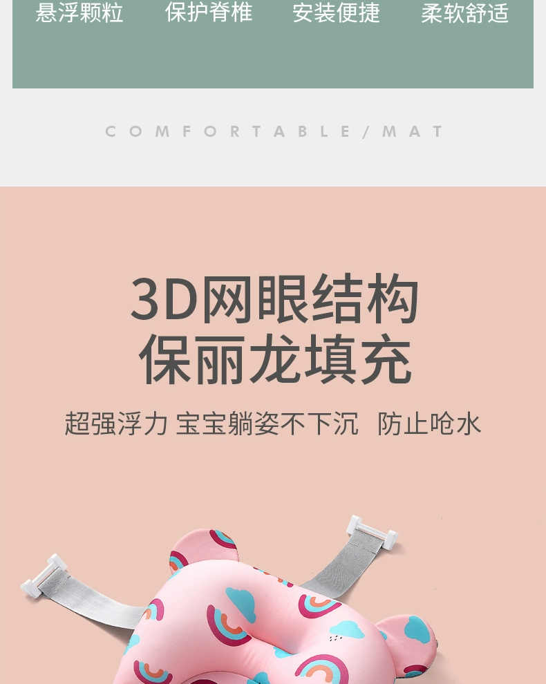 Параметры (прибл.):Ткань: полиэфирное волокно + спандекс + сэндвичНаполнитель: частицы полиолонаПодходит для: старше 0 летОсобенности:Подходит для новорожденных от 0 до 6 месяцев или для маленьких детей. Он использует структуру ванны-кровати для эффективного предотвращения скольжения ребенка в воду. Мягкий материал позволяет избежать крушения головы ребенка по краям кровати.Размер ребенка 3-12 месяцев не боится быть избитым. Ребенок будет задыхаться, когда купаться, когда он склонен двигаться по своему желанию. Он имеет хлопчатобумажную подкладку для укладки головы и длинную полоску.Список товаров:1 * детский коврик для ванной (ванна не входит в комплект)
