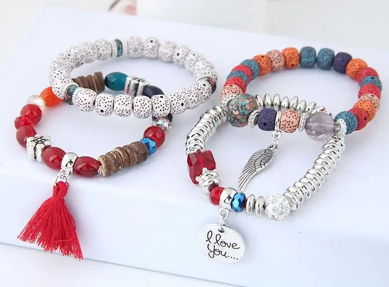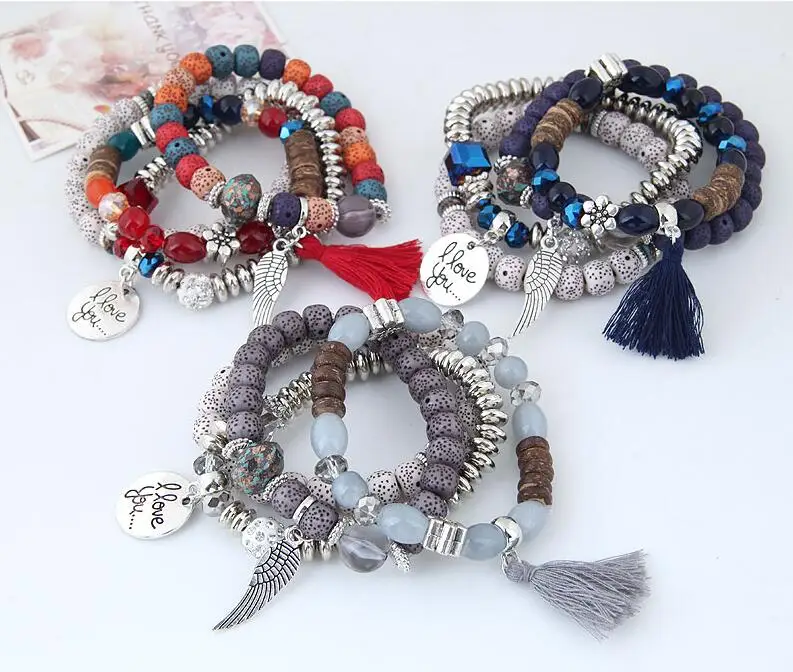 На платформе в богемном стиле браслеты для женщин вулканического камня крылья браслет шарма сердца кулон браслет из бусинок браслеты для вечерние