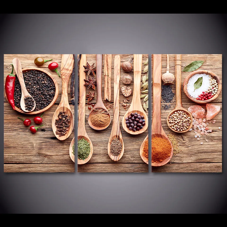 Триптих, натюрморт, 5d алмазная живопись, полные 3 шт., ложка, зерна, специи, алмазная вышивка, мозаика, стразы, украшение для кухни A313