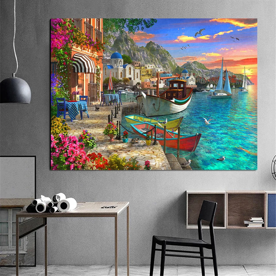 Алмазная мозаика 5D "сделай сам", с изображением греческого острова...