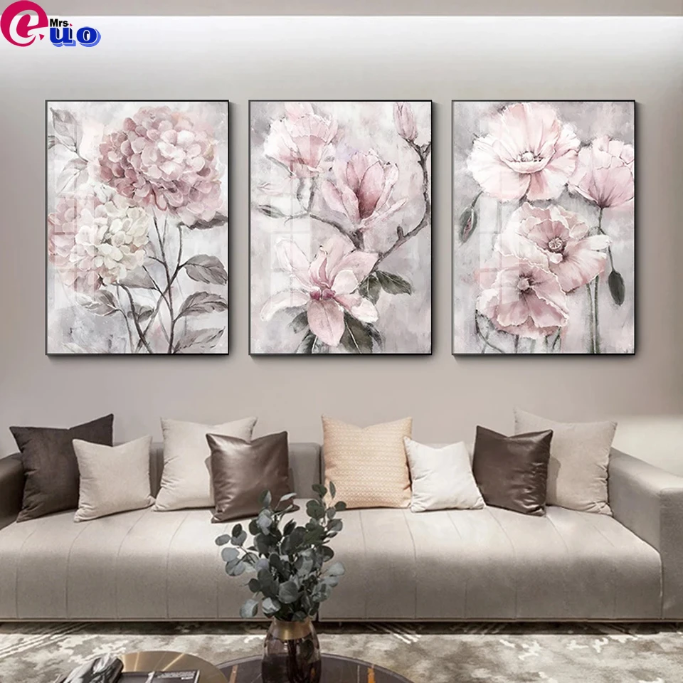 Триптих цветок настенная живопись розовый цветочный алмаз вышивка ванная комната гостиная домашний Настенный декор фотографии 3 шт