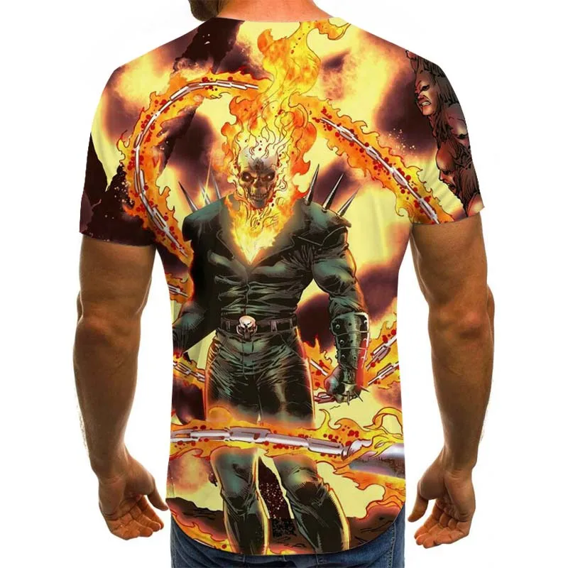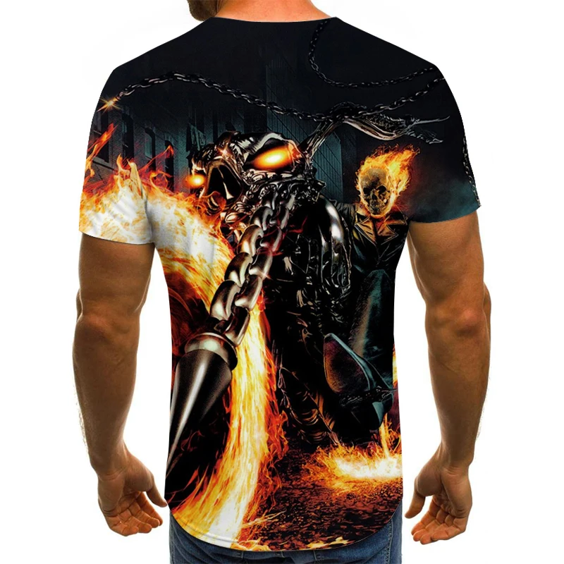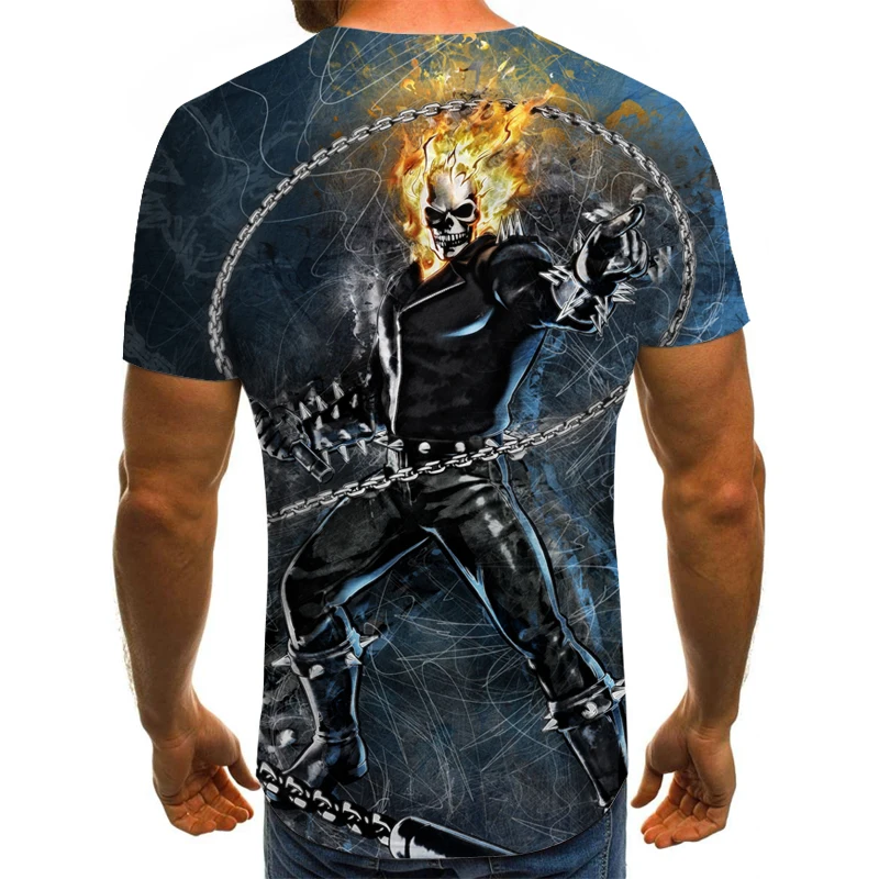 Футболка мужская с 3D-принтом черепа, модная тенниска с коротким рукавом, крутая майка Призрачного гонщика, топ с принтом рок, огня, черепа, лето