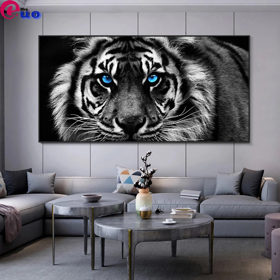 Большой размер 5d алмазная живопись Черно-белая голова тигра Алмазная вышивка животное искусство картина для гостиной Декор куадросов