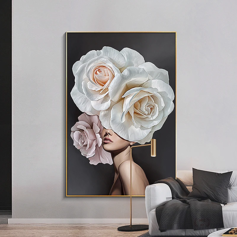 Абстрактный цветок, женские плакаты и принты, скандинавские картины на холсте, сексуальная леди, Настенная картина, декоративные картины для интерьера, домашний декор