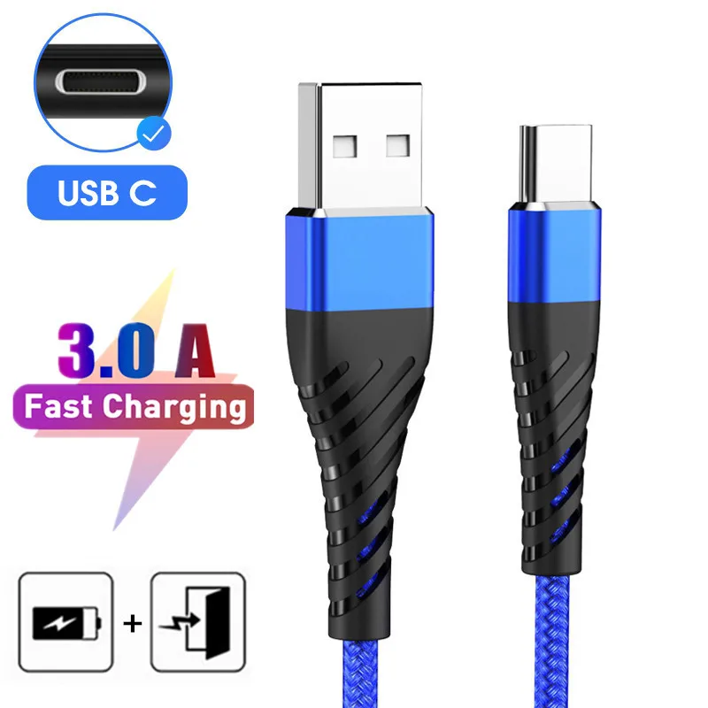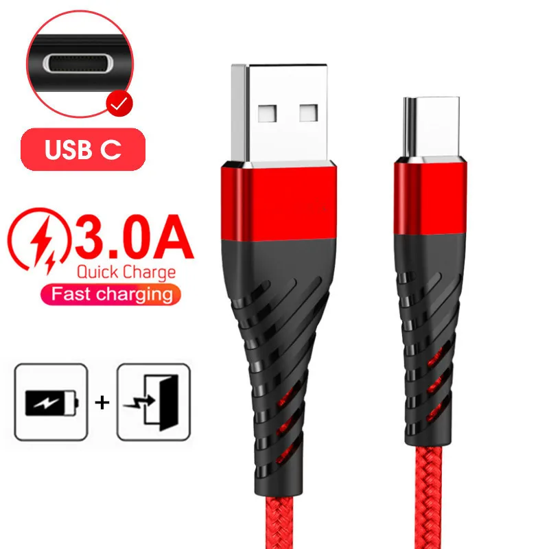 1 м/2 м длинный разъем из сплава USB 3,0 Тип C кабель для быстрой зарядки и передачи данных для Samsung Galaxy A50 A70 A30 A20 A31 A51 A71 S8 S10 S20 S21 для Huawei P20 P30 lite P40 Pro Honor 20 s хонор 20 30 про 9X 9 10 для Xiaomi mi 10 9 9T Mi a3 a2 Redmi Note 9S Note 8 T 8 7 pro Oukitel C17 Pro для HTC 10 U11 LG G7 G8 Thinq Android зарядное устройство для телефона Быстрая зарядка USB нейлоновые провода.