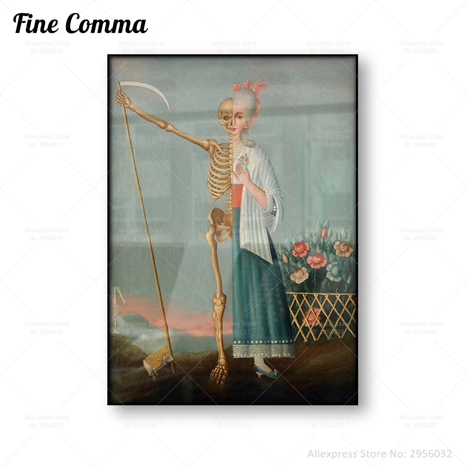 Постер в стиле мори, Винтаж, картина на стену, Женская жизнь и смерть, скелет, жнец, античный холст, рисунок, напечатанная картина, декор для стен дома